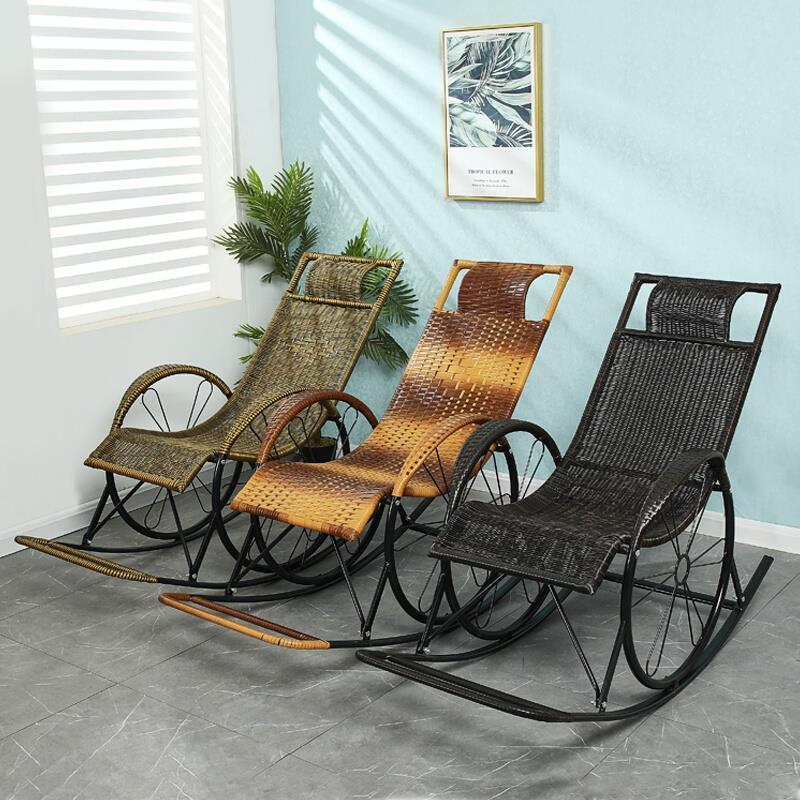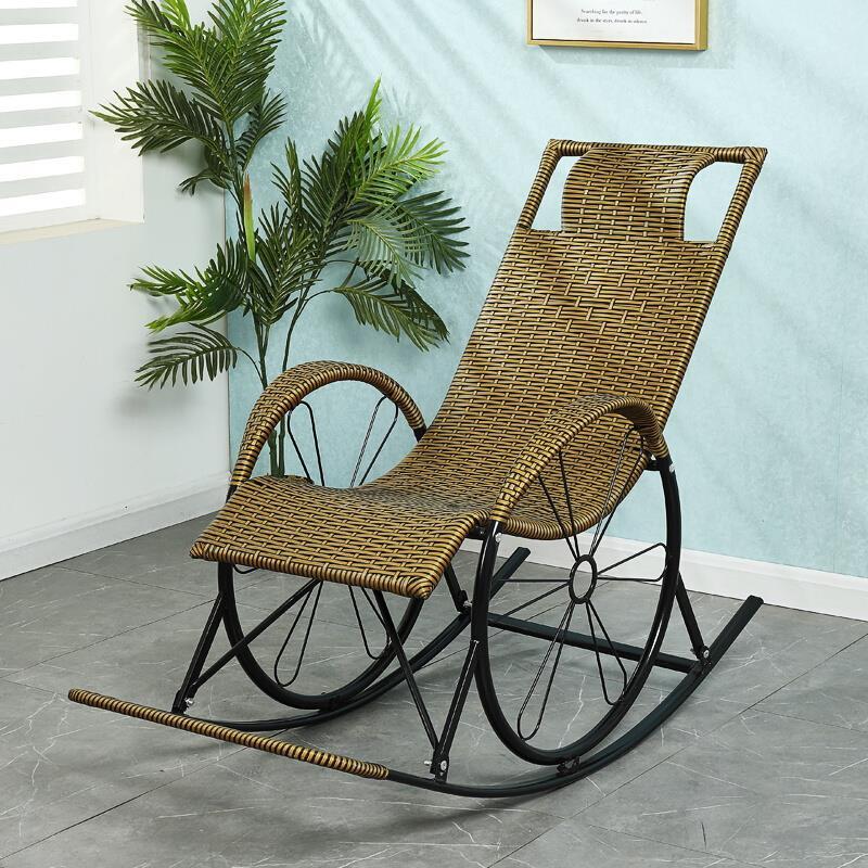 Household Rocking Chair Rocking Chair Reclining Chair Rattan Woven Elderly Chair [thickened Hand Woven] Yellow Round Thread