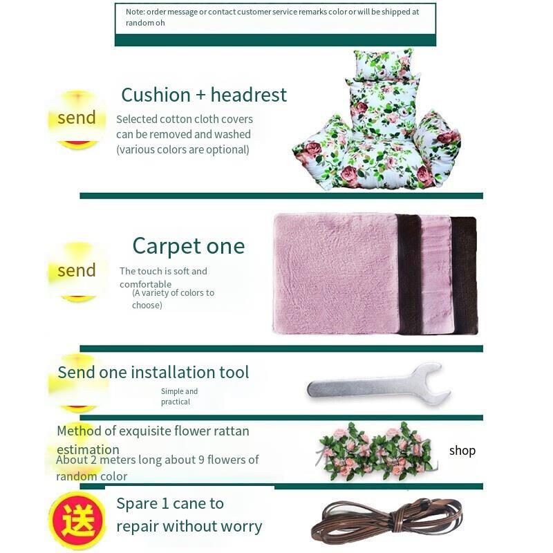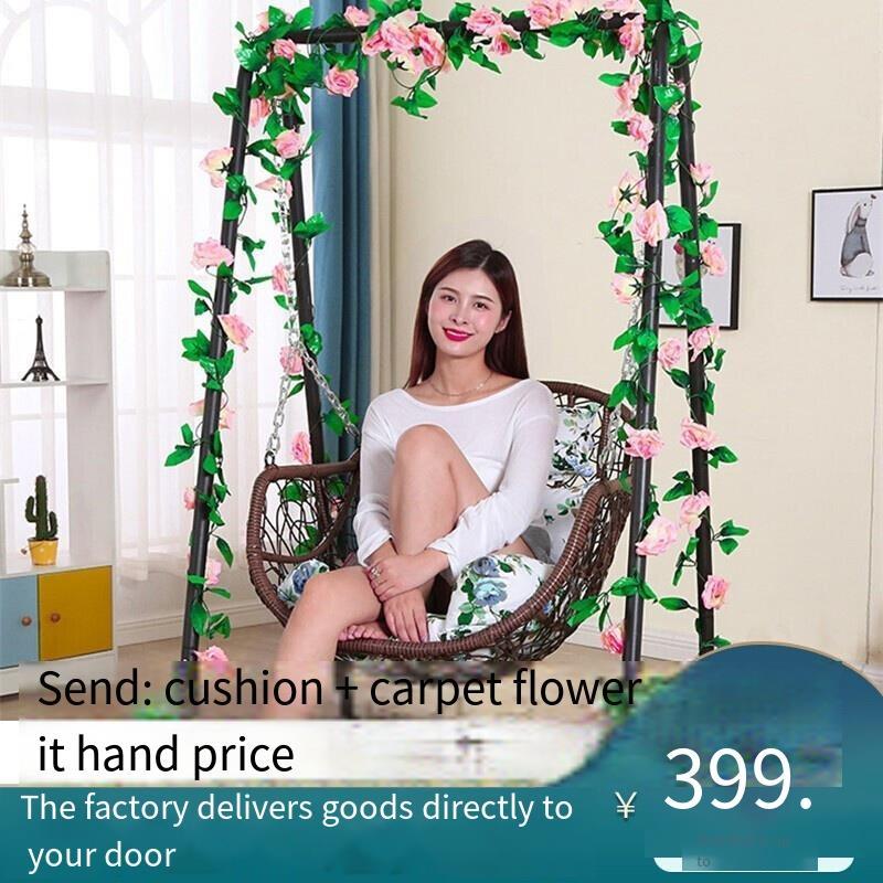 Indoor Cradle Chair Hammock Bedroom Balcony Leisure Bird's Nest Hanging Orchid Rocking Chair Courtyard Swing White Swing + Cushion + Carpet