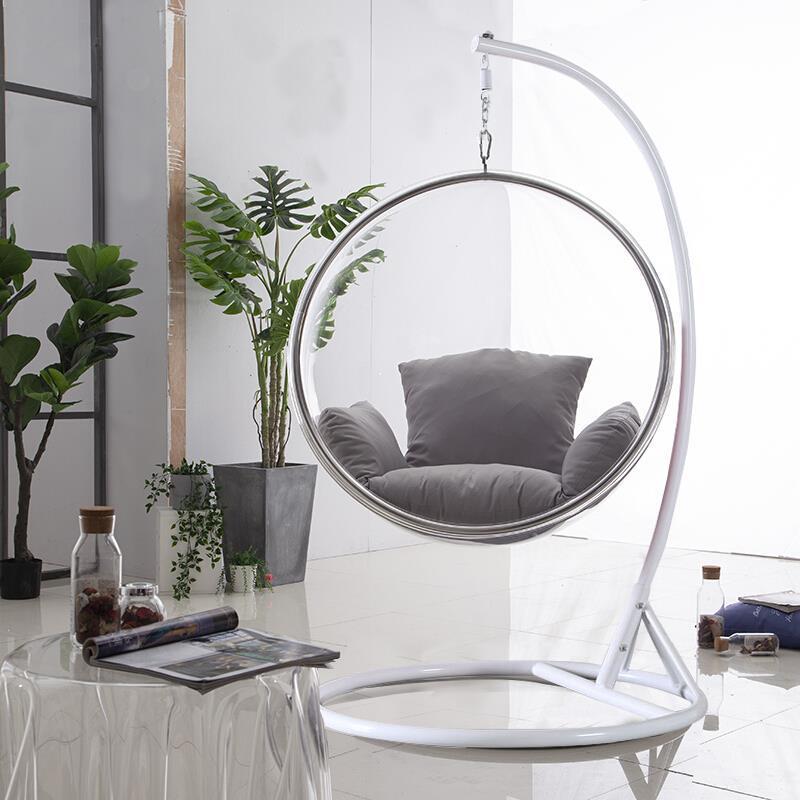 Hanging Chair Indoor Net Red Bubble Chair Space Acrylic Transparent Swing Lazy Balcony Hemisphere Creative Cradle Suspender With Pink Pad