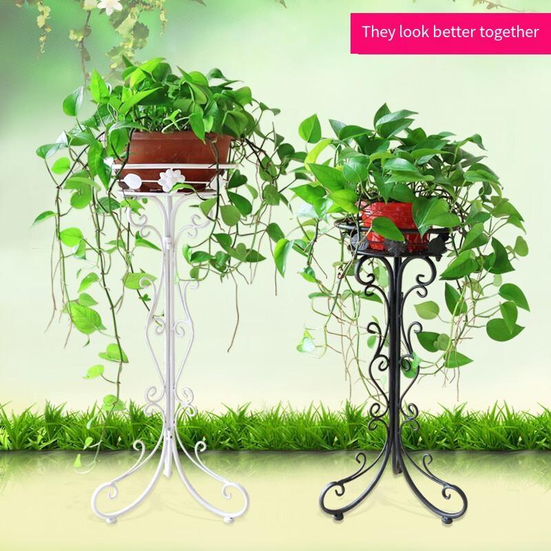 Iron Flower Rack Single-layer Green Rose Chlorophytum Floor Flower Pot Rack Indoor And Outdoor European Living Room Balcony Folding Flower Rack 8087 Small [white]