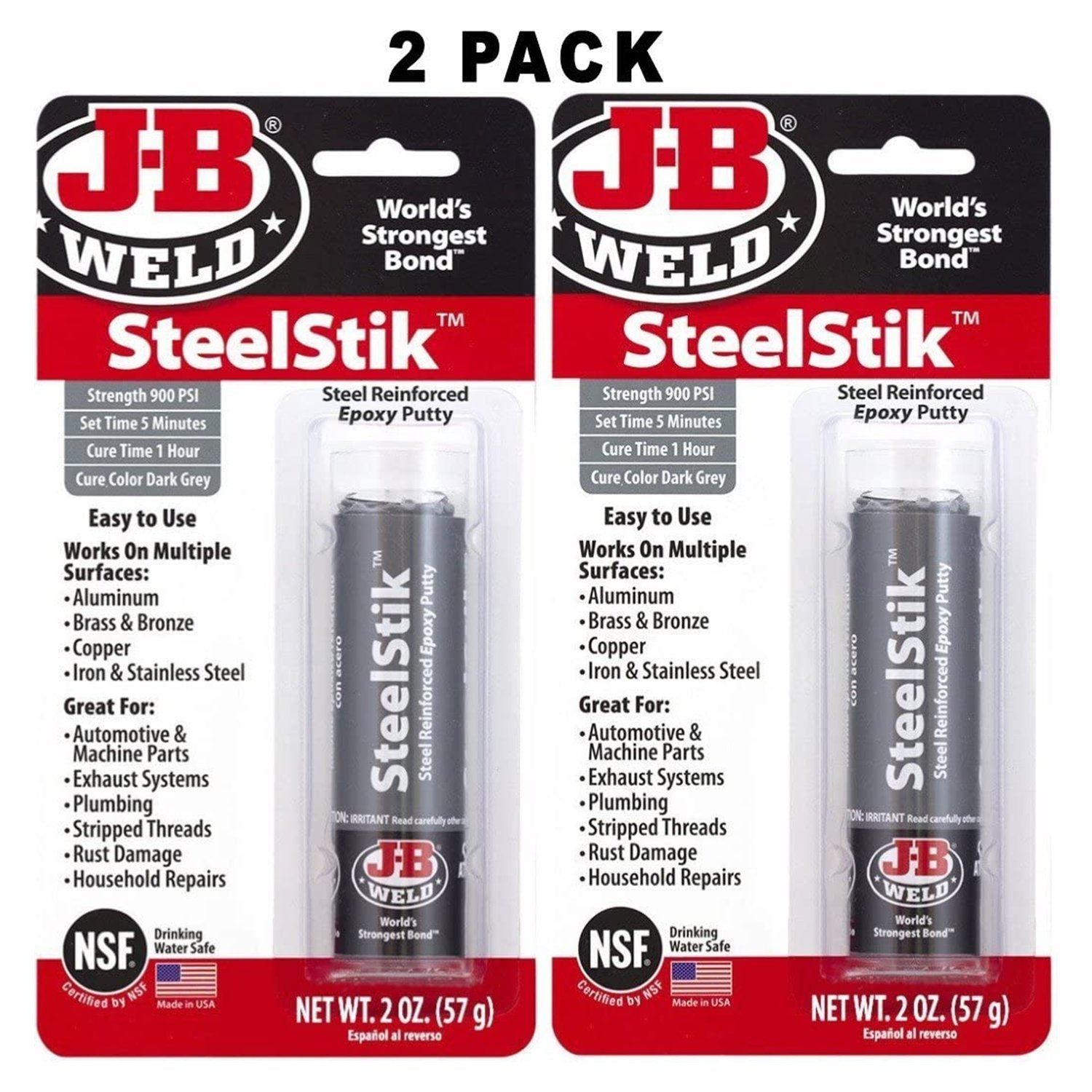 J-B WELD STEELSTIK: A hand mixable two part epoxy putty stick that is steel reinforced & non-rusting to quickly repair or rebuild anything made of metal! J-B Weld SteelStik is certified by the NSF and is safe for contact with potable water.