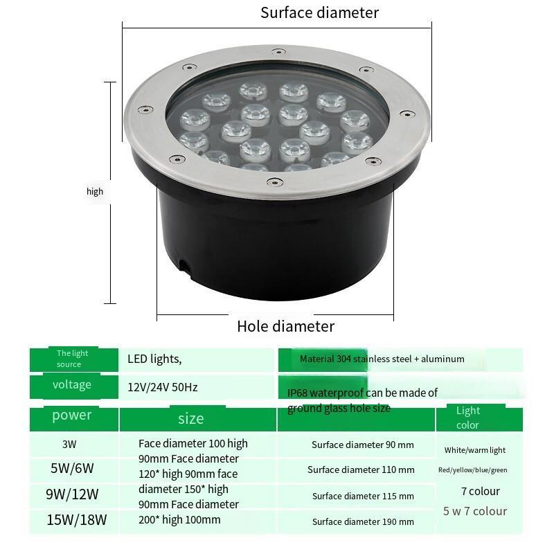 LED Underwater Buried Lamp Fountain Waterscape Fish Pond Landscape Lamp Waterproof Stainless Steel Colorful Spotlight Underwater Swimming Pool Lamp 6w