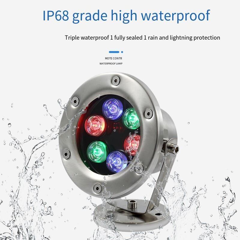 LED Underwater Light Fish Pool Light Stainless Steel Tempered Glass Pool Light Outdoor Waterproof Colorful Color Changing Fountain Light 3w