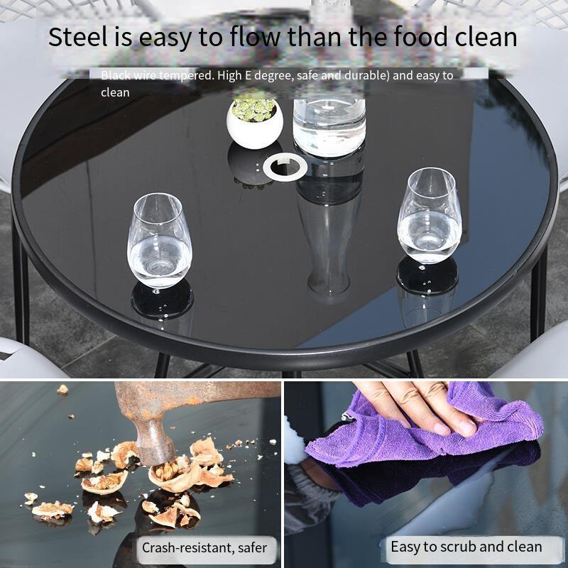 Leisure Simple Outdoor Table And Chair Combination Garden Balcony Small Tea Table And Chair 4 + 1 [with 80cm Black Silk Glass Square Table]
