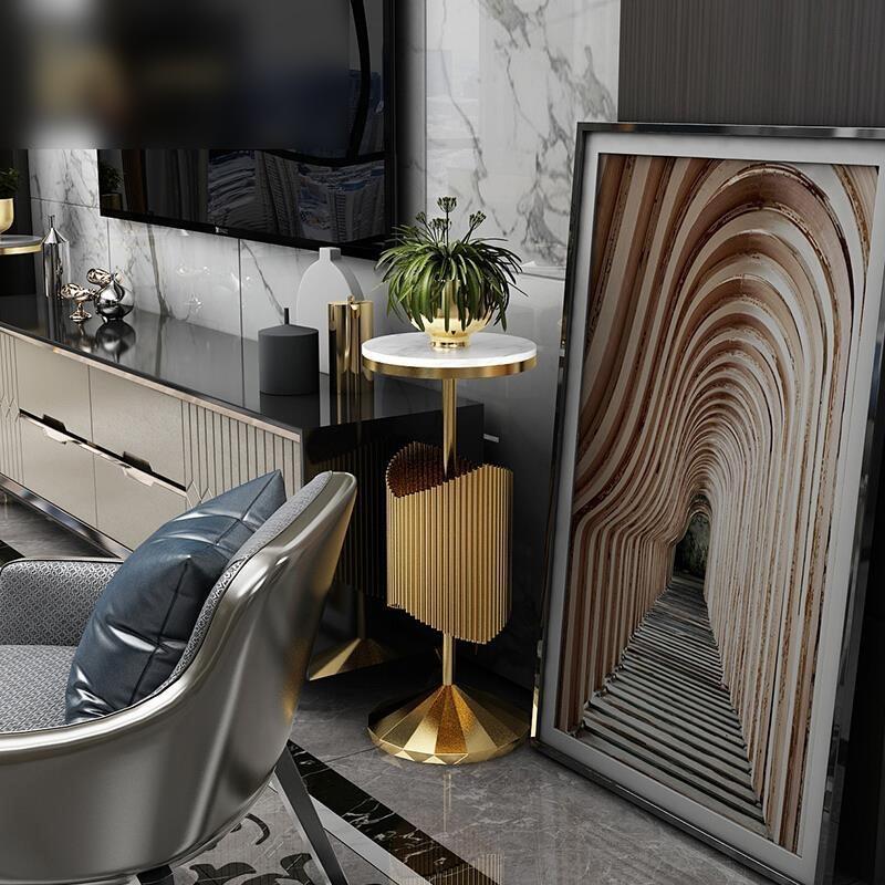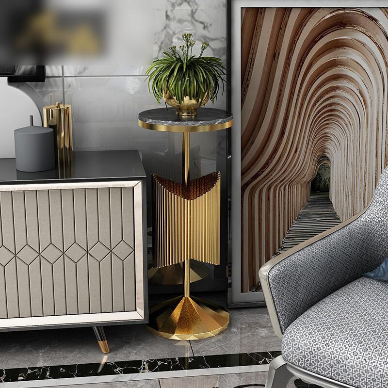 Light Extravagant Edge Flower Rack Ornament Rack Floor Flower Rack Solid Flower Rack Living Room Decorative Marble Black Marble [high 90]