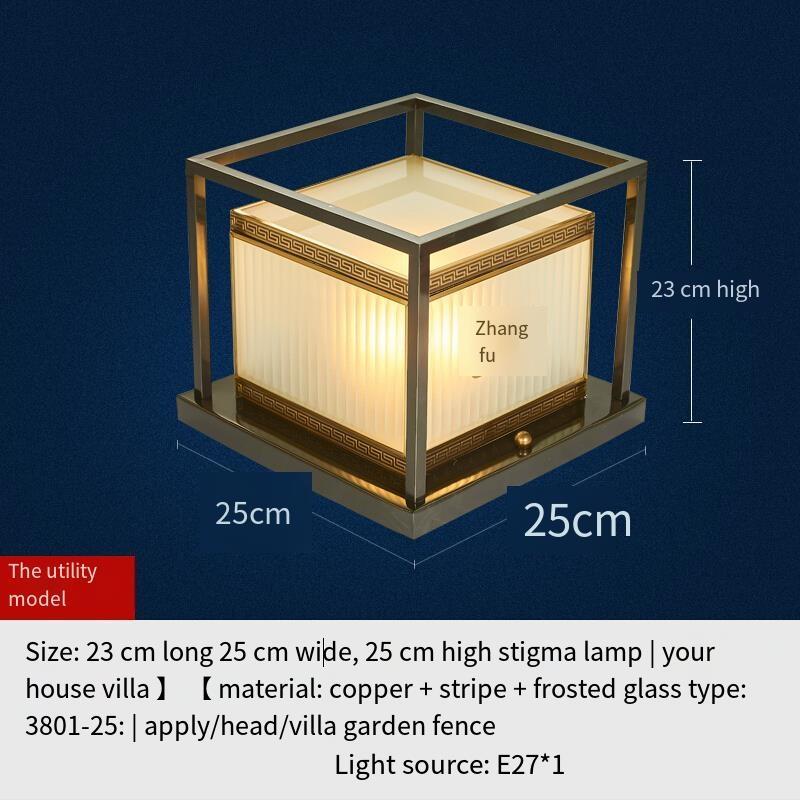 Modern Chinese All Copper Column Head Lamp Villa Courtyard Column Household Lamp Simple Outdoor Waterproof Wall Head Lamp Landscape Courtyard Lamp