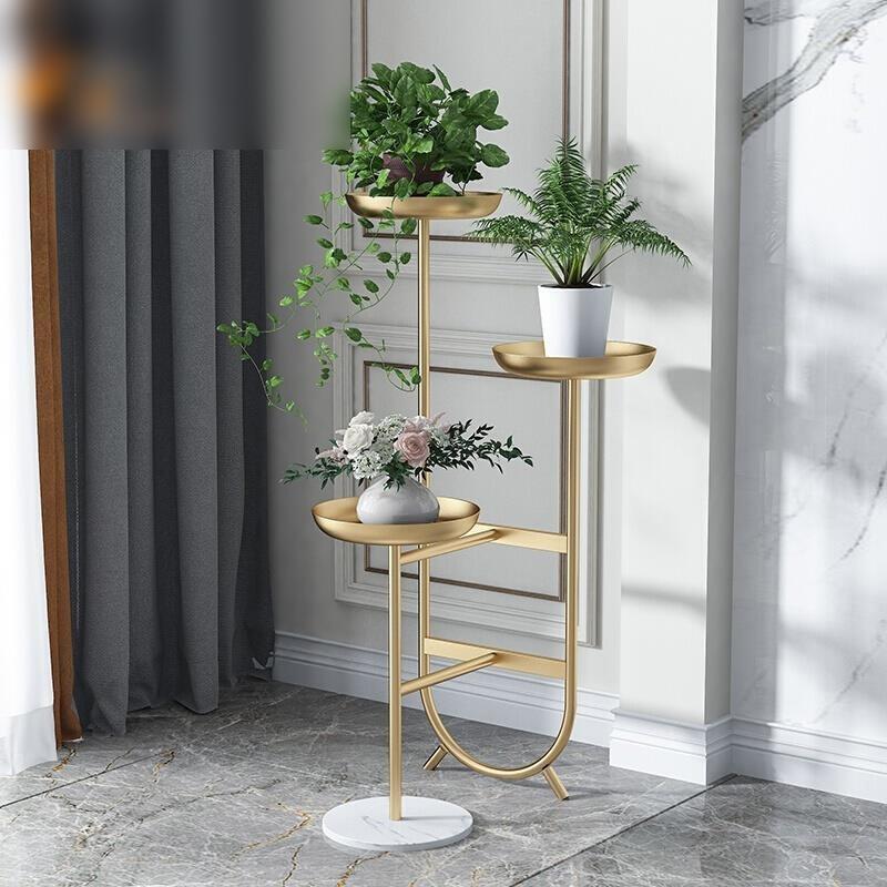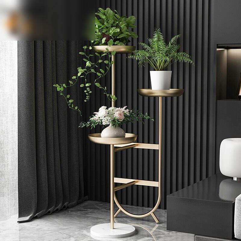 Nordic Flower Rack Iron Multi-layer Nordic Light Luxury Indoor Living Room Decoration Flower Rack Balcony Simple Green Luolan Multi-layer Floor Flower Pot Iron Gold Three-layer Flower Rack