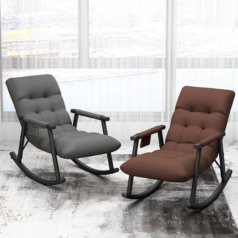 Nordic Lazy Sofa Rocking Chair Adult Nap Family Single Balcony Living Room Back Leisure Chair Reclining Chair Grey