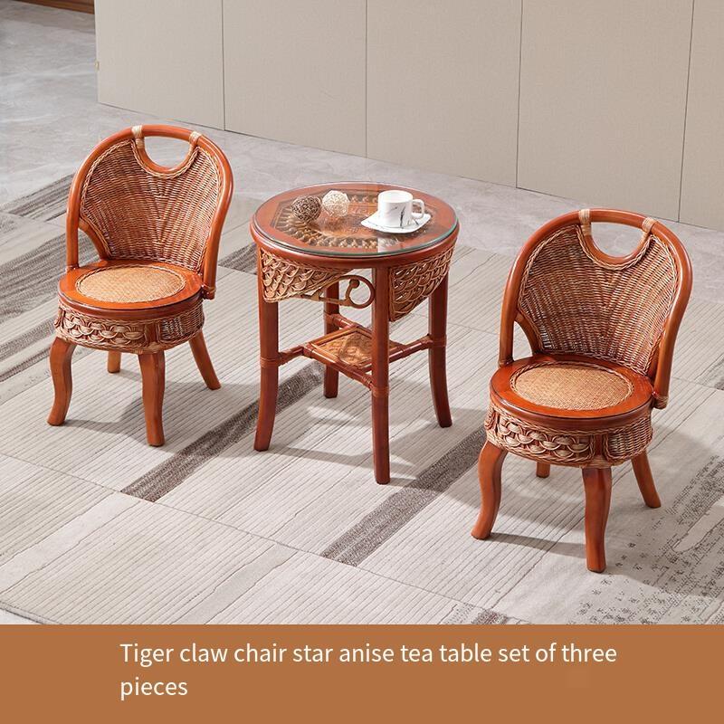 Old Style Rattan Chair Three Piece Set Of Table And Chair Living Room Bamboo Teng Chair Leisure Balcony Rattan Chair Double Spell Rattan
