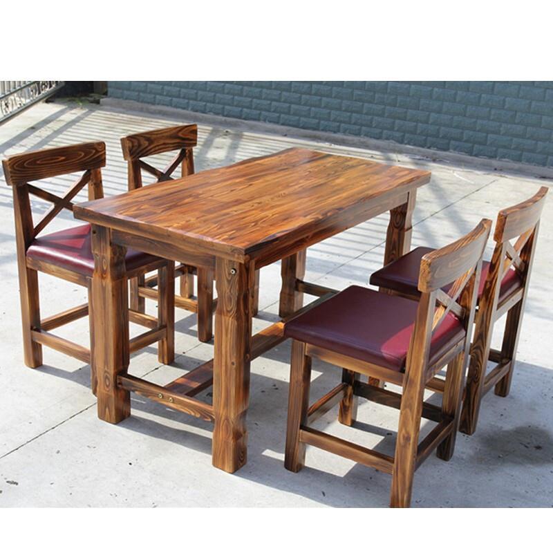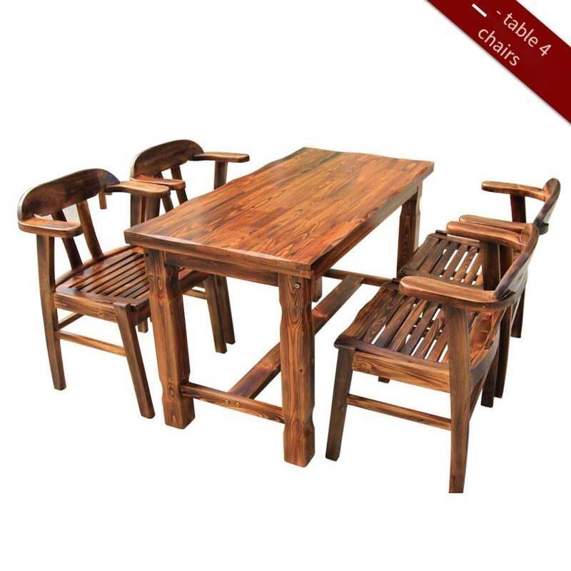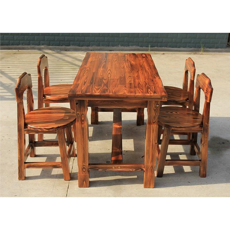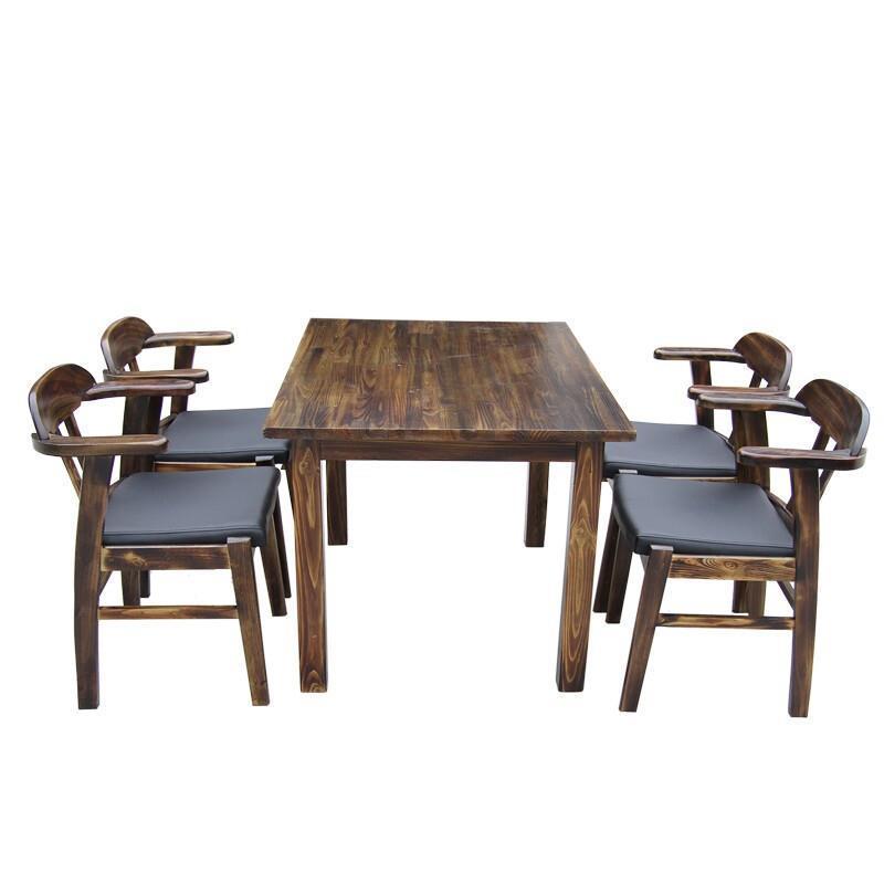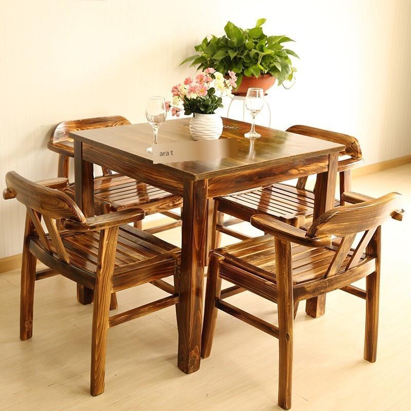 Outdoor Carbonized Anticorrosive Wood Table And Chair Combination Courtyard Open Balcony Garden Solid Wood 80 CM Square Table 4 Chairs