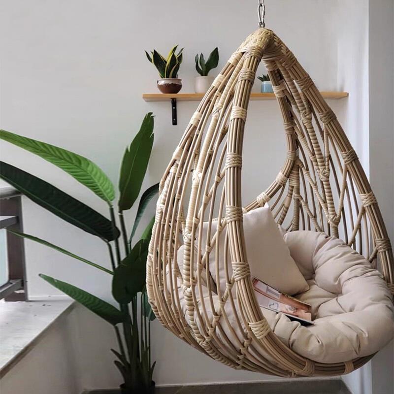 Outdoor Balcony Hanging Chair Household Basket Rattan Chair Indoor Lazy Simple Swing Hanging Chair (pillow)