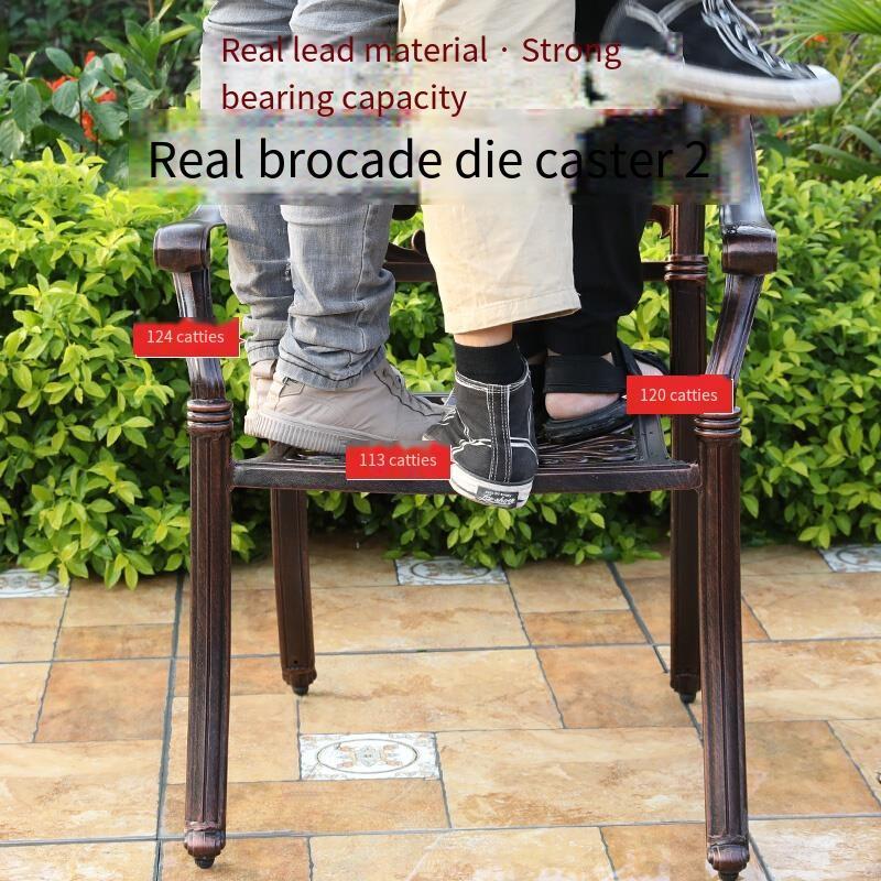 Outdoor Balcony Table And Chair Cast Aluminum Courtyard Garden Furniture Villa Leisure Combination 6 + 1 [with 158cm Aluminum Frame Ceramic Tile Long Table]