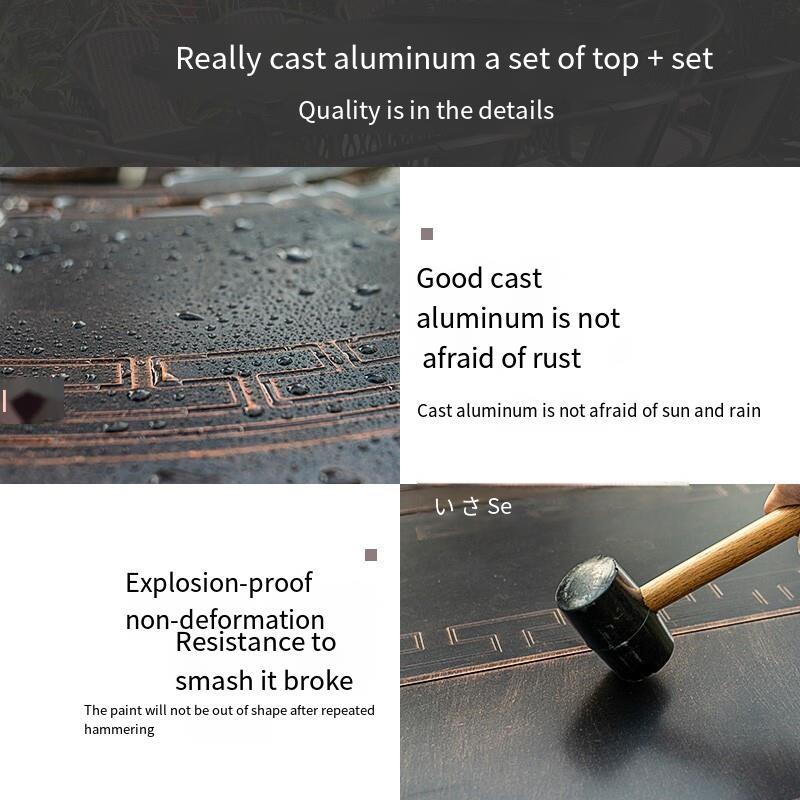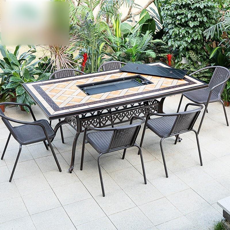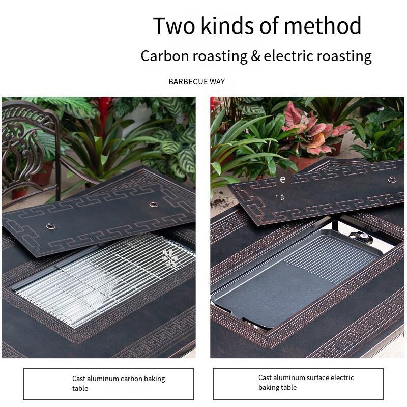 Outdoor Barbecue Cast Aluminum Table And Chair Villa Garden Outdoor Courtyard Iron Combination 6 Bordeaux Chair + 1 Aluminum Grill Round 122cm