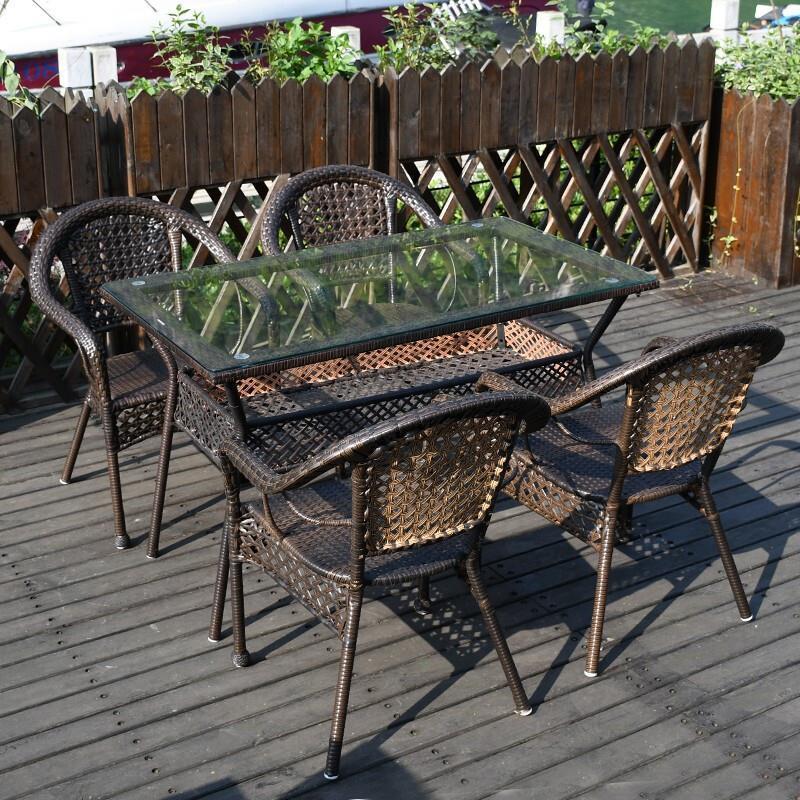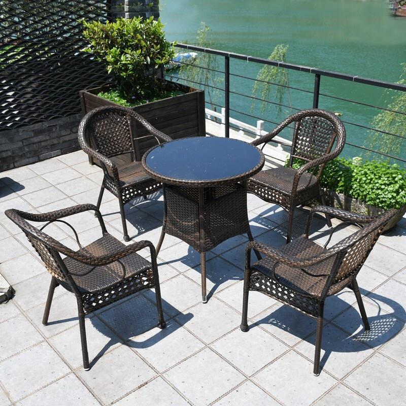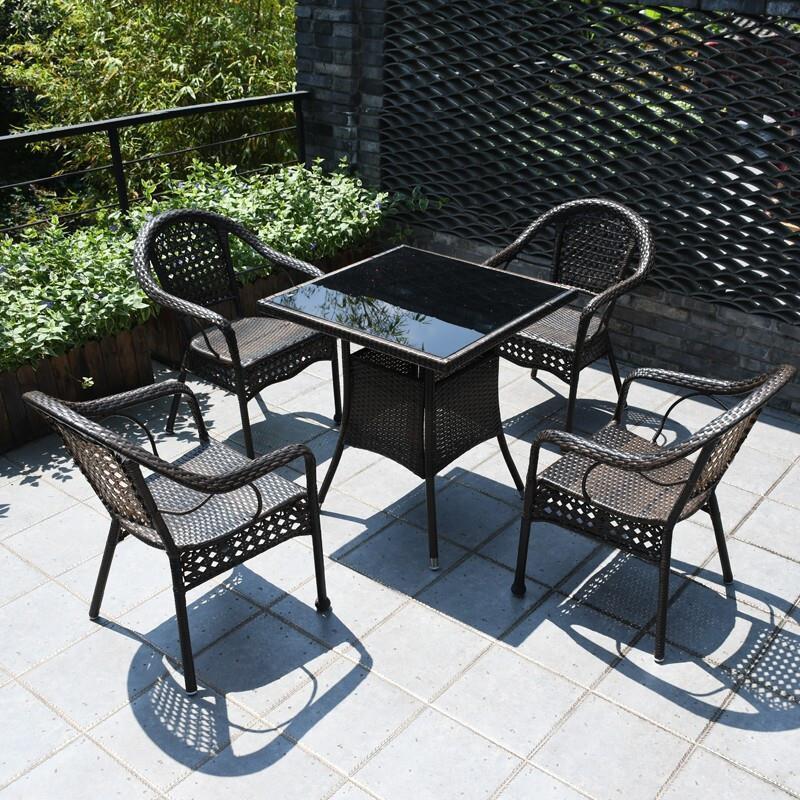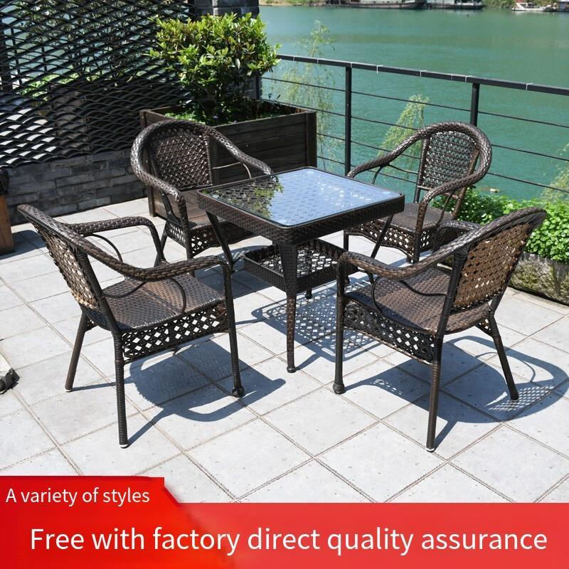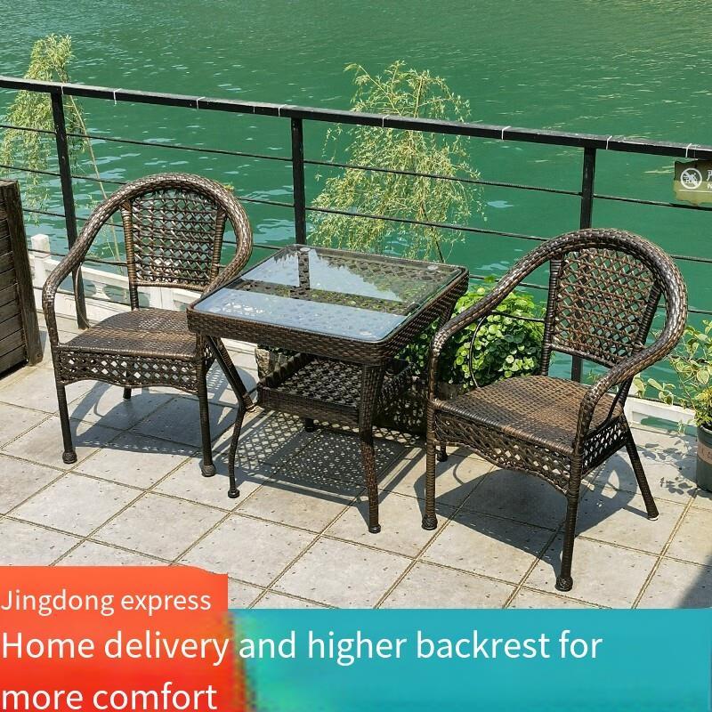 Outdoor Courtyard Table And Chair Combination Balcony Rattan Three Piece Set Modern Simple Home Stay Rattan Chair Resort Courtyard Teahouse PE Imitation Leisure Combination 2 High Back Chairs + 64 Storage Table