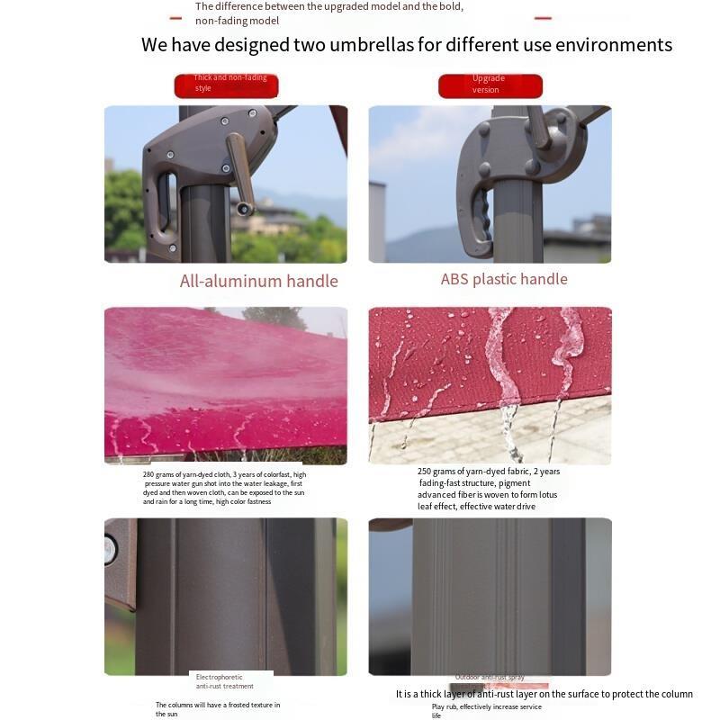 The base is equipped with rollers (single side), minus the trouble of moving, the weight after being filled with water and sand reaches 130kg, which can effectively enhance the wind resistance