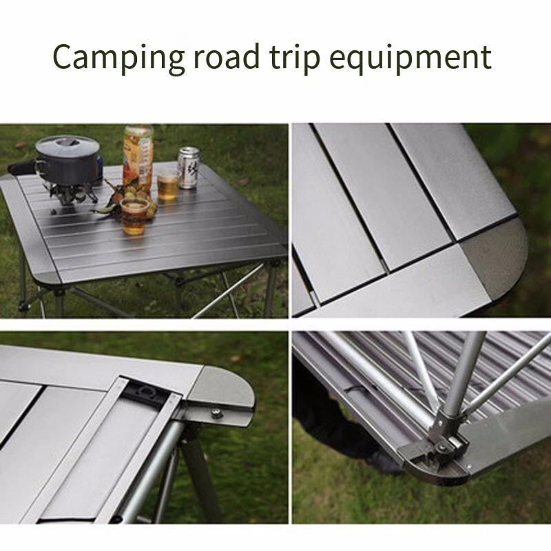 This product is made of all aluminum alloy, strong and light. The desktop is beautiful and easier to clean and effectively prevents scratches on the desktop. All connections and stress parts are made of high-strength aluminum alloy materials, which completely avoids the connection parts from breaking during use. Deformation. The support frame is composed of 4 main pipes and 8 auxiliary pipes, which greatly increases the firmness and stability of the table, and makes disassembly and assembly more convenient. It is a good helper for car travel, camping, picnic, and leisure office.