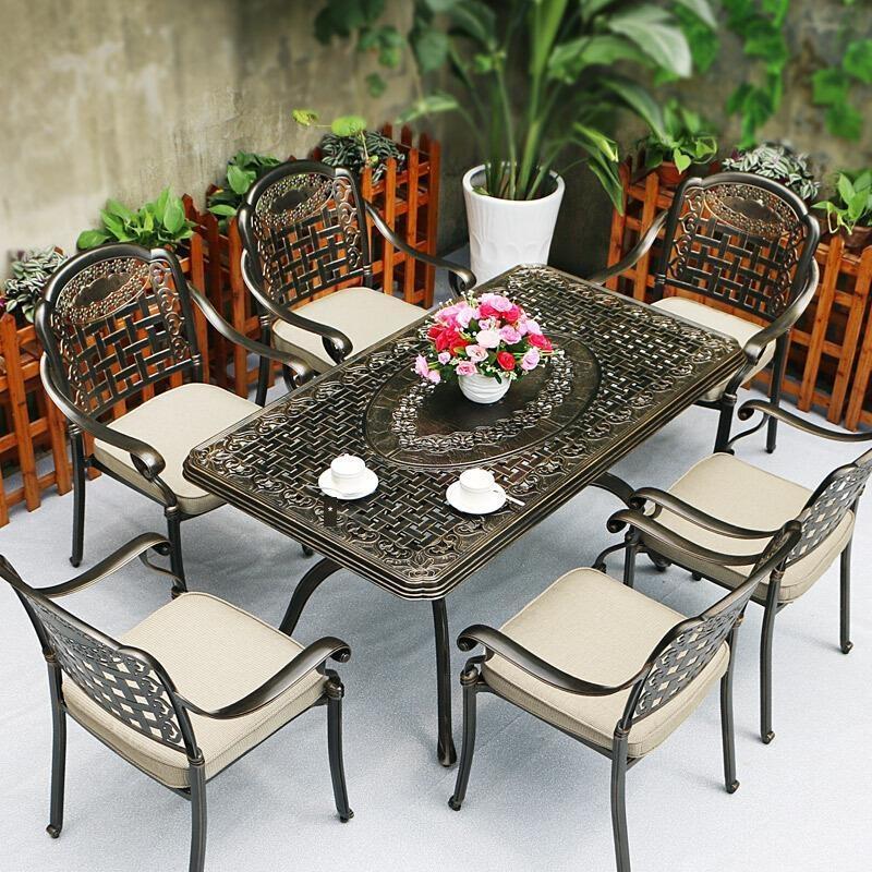 Outdoor Furniture Cast Aluminum Table And Chair Combination Balcony European Courtyard Garden Terrace Sunshine Room Iron Seven Piece Set Bronze 173cm