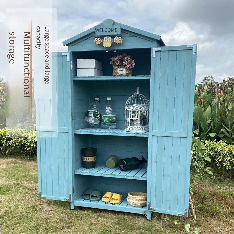 Outdoor Garden Tool Room Courtyard Storage Cabinet Sunscreen Waterproof Gardening Sundries Balcony Storage Cabinet Cyan 4 Grid