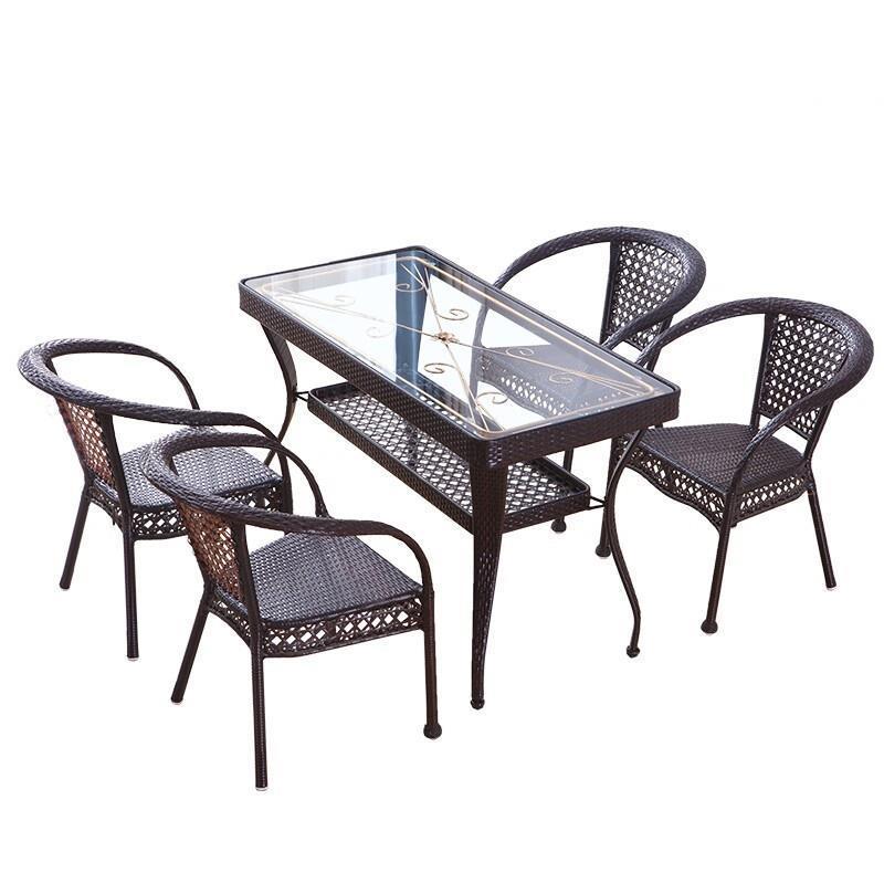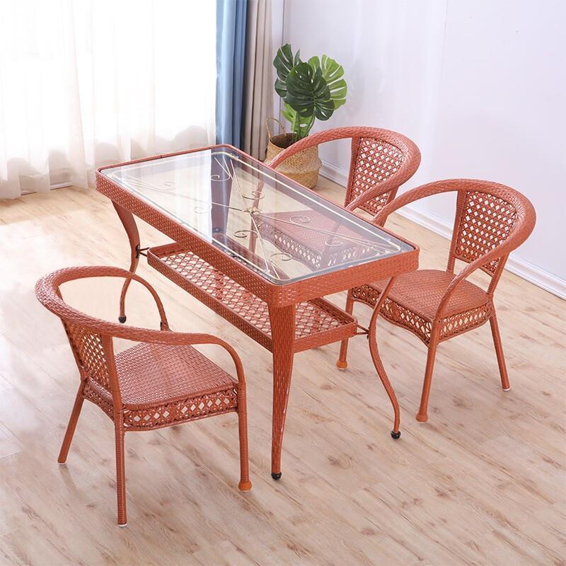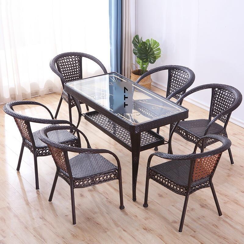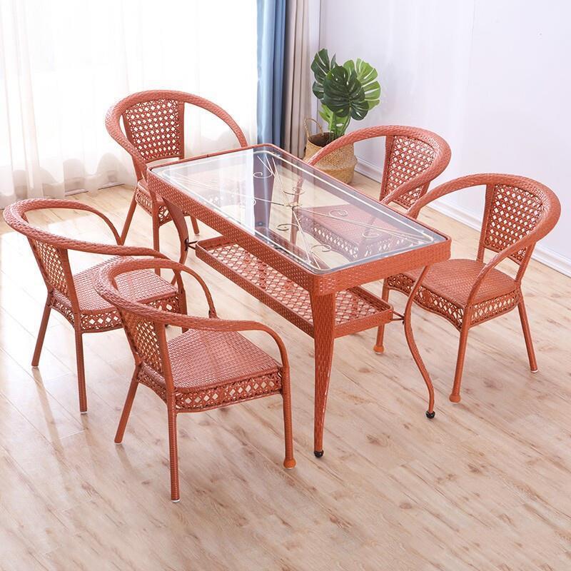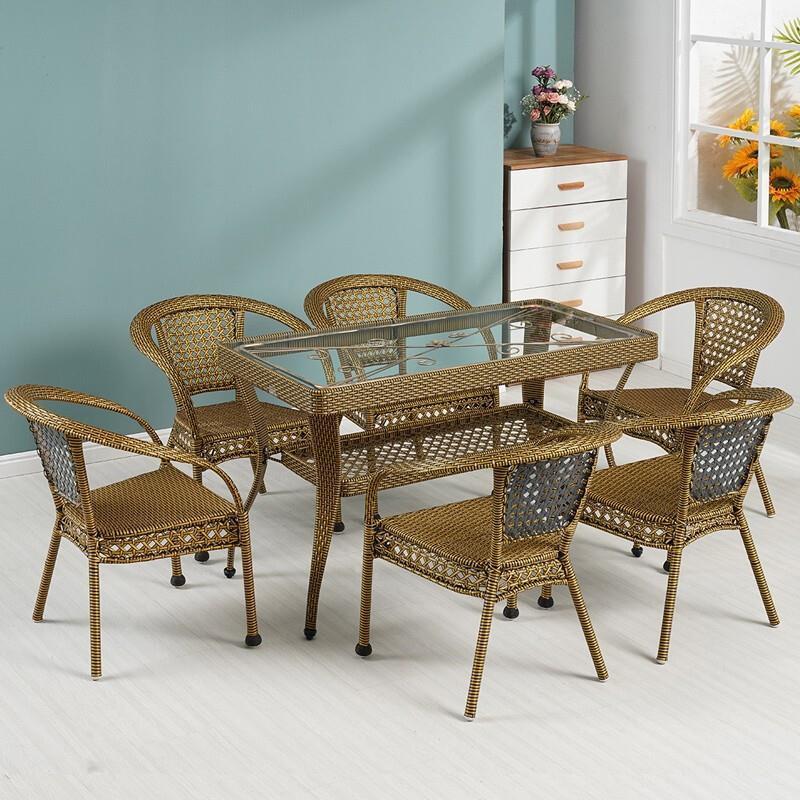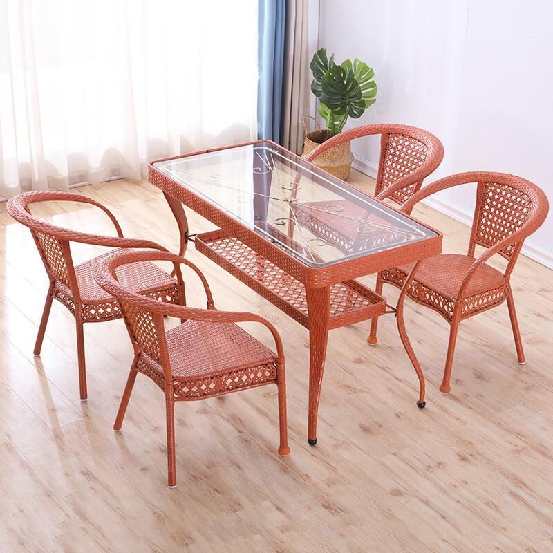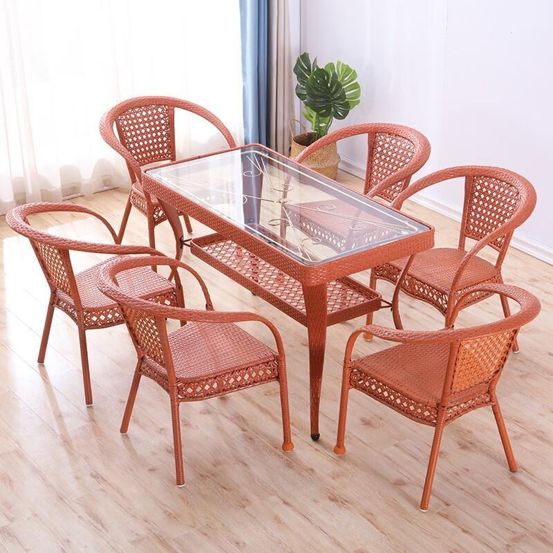 Rectangular Outdoor Leisure Balcony Table And Chair Combination Retro Old Terrace Iron Tea Table Log Yellow One Table Six Tables