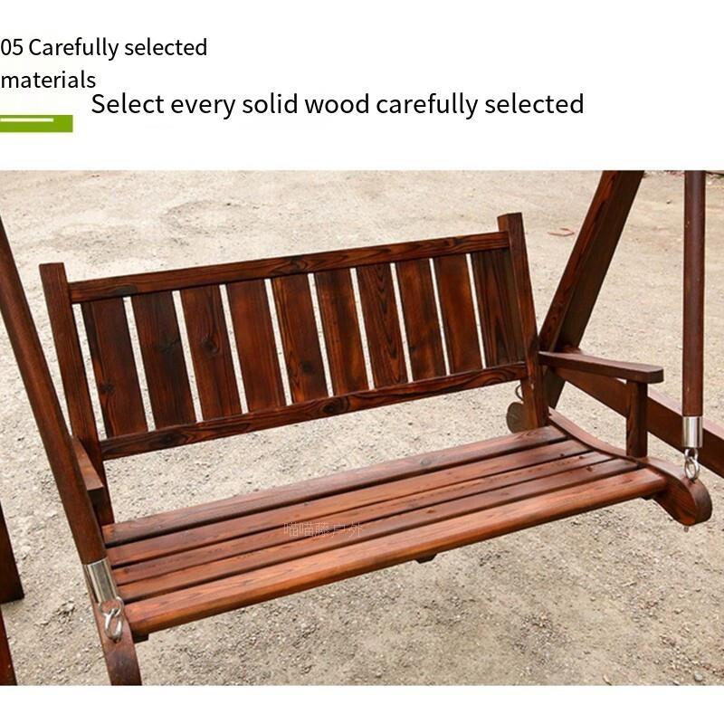 Outdoor Solid Wood Rocking Chair Carbonized Wood Swing Hanging Chair Garden Balcony Leisure Double Table Anticorrosive Wood Deep Carbonized Ribbon Ceiling