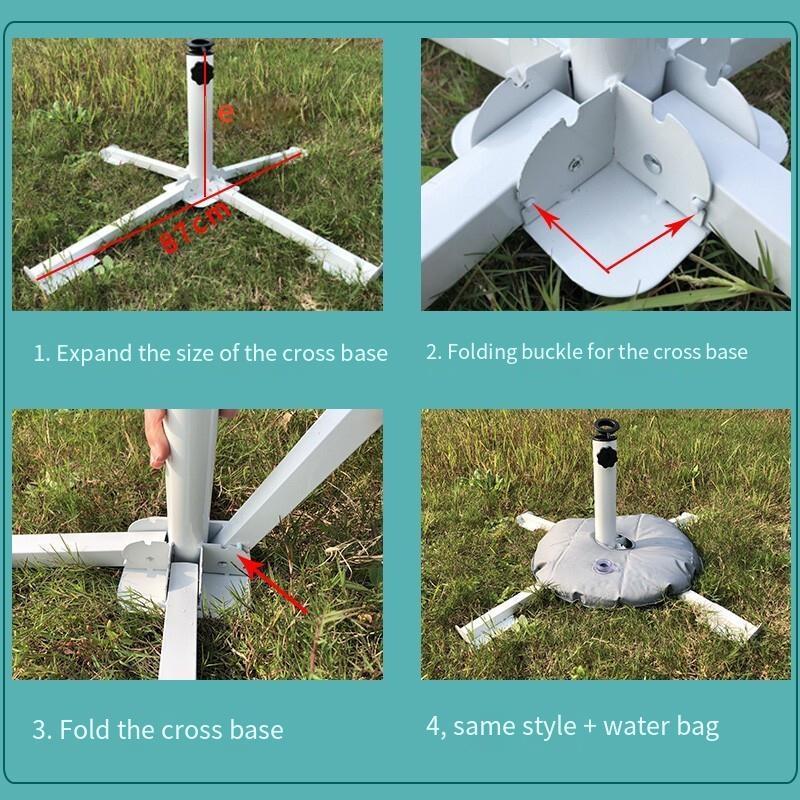 Outdoor Sun Umbrella Base Water Injection Tripod Folding Beach 30 Kg Loading Sand Fork Cross Cast Iron Four Leg Base 20L Water Injection Base (thickened Red)