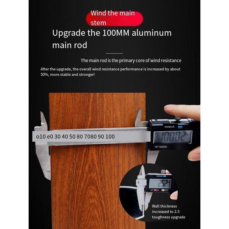 Upgraded 100 mm aluminum main pole The main pole is the main core of wind resistance. After the upgrade, the overall wind resistance performance has increased by about 50%, which is more stable and stronger!