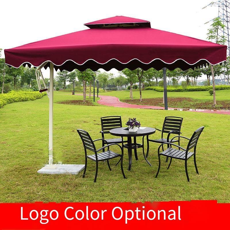 2.2m Iron 4-strand Umbrella With Marble Base Outdoor Sunshade Platform Roman Umbrella Red