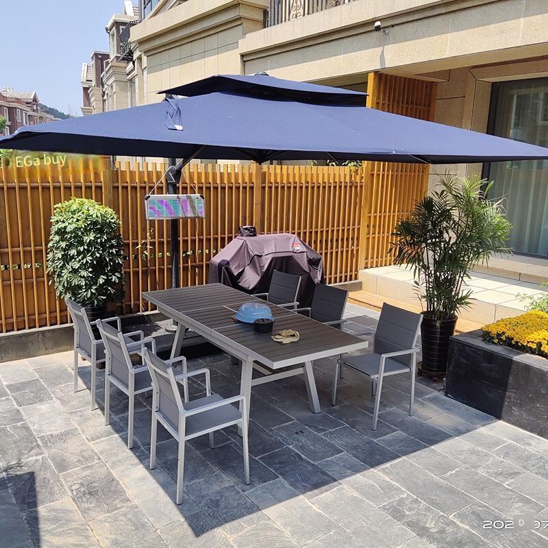 Outdoor Sunshade Umbrella Courtyard Garden Villa Terrace Roman Umbrella Large Sun Umbrella 3x4m Square [navy Blue, Color Fastness For Ten Years, 200kg Water Tank]