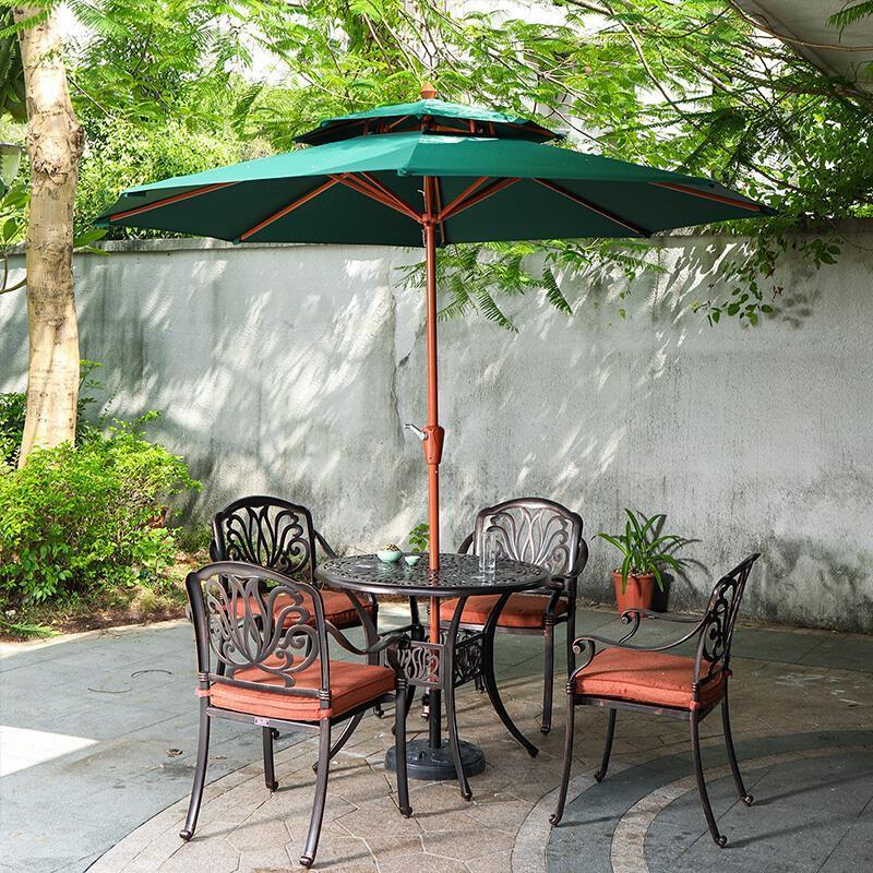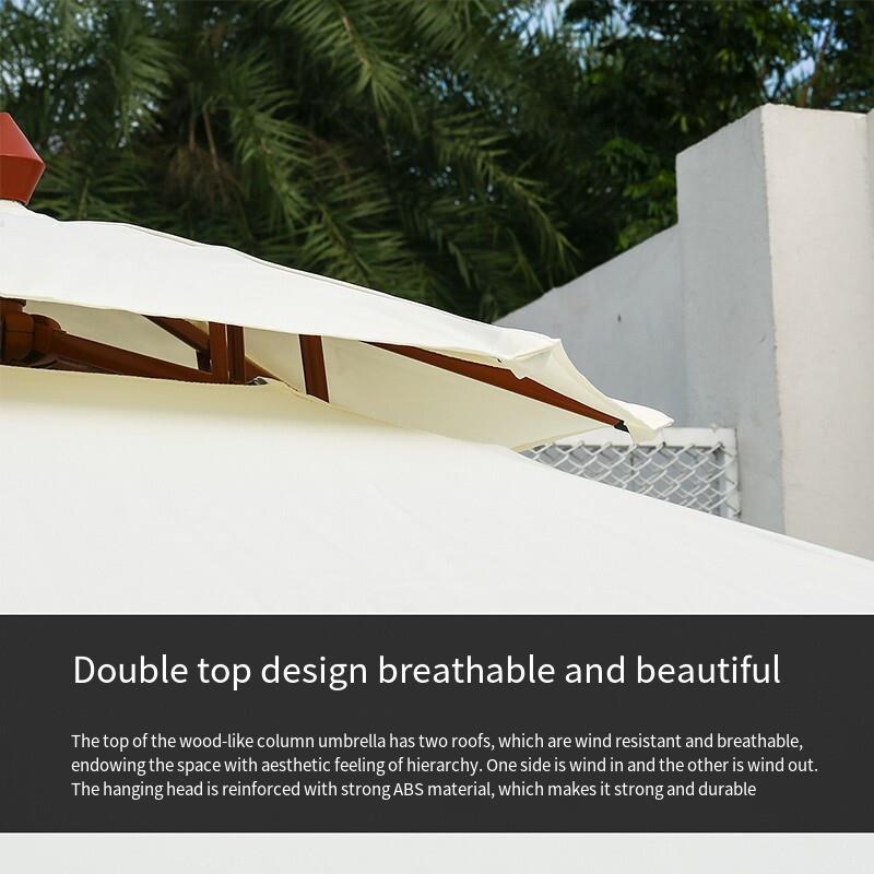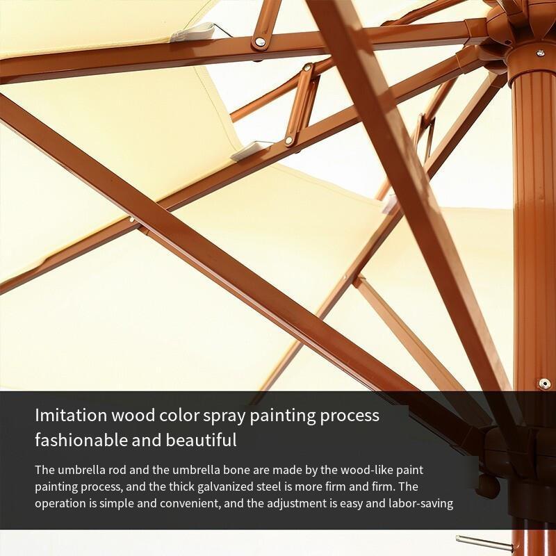 Outdoor Sunshade Umbrella Garden Middle Column Courtyard Milk Tea Shop Bar Commercial Sun Umbrella Folding Imitation Wood Grain Middle 2.7m White [with 12.5kg Base]