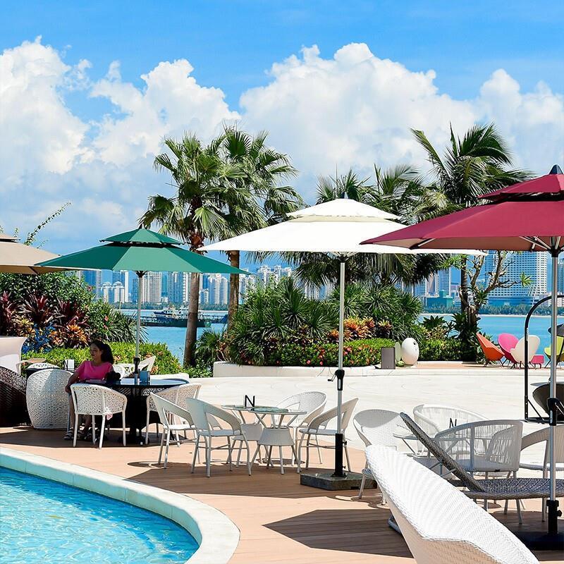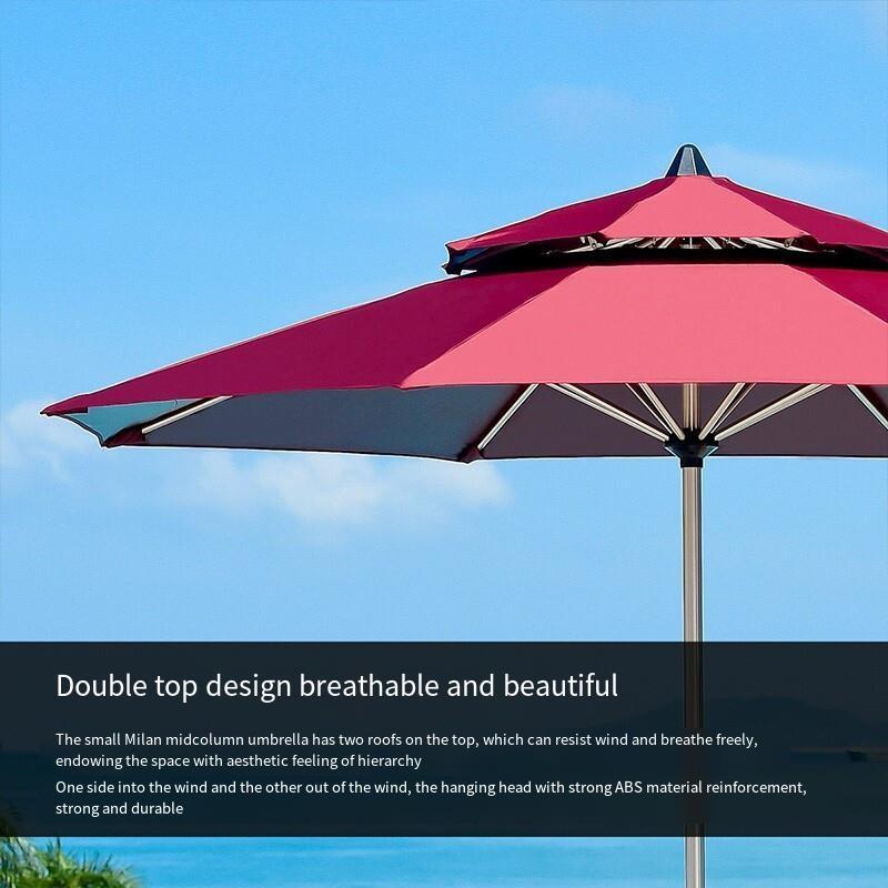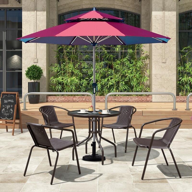 Outdoor Sunshade Umbrella Sun Stall Table Chair Leisure Courtyard Beach Fishing Khaki Double Top Umbrella + One Table And Four Chairs [d80 Round Table, With 12.5kg Base]