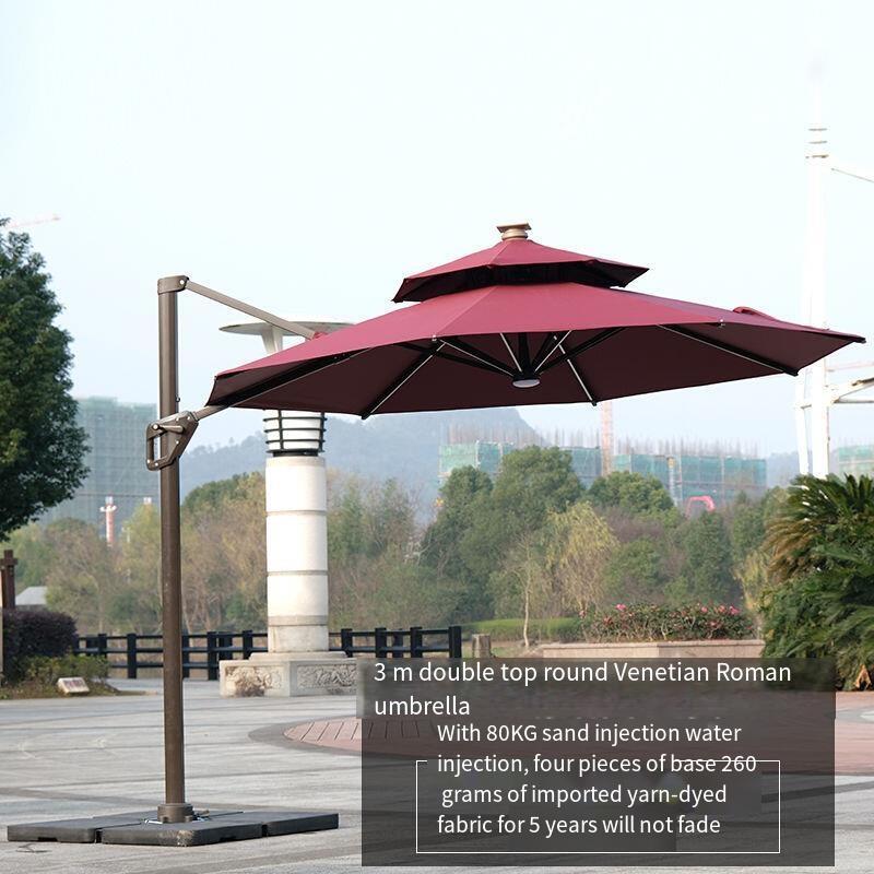 Outdoor Sunshade Umbrella Villa Garden Roman Large Sun Sunscreen Open Yard Stall Flagship Round Double Top 3m Wine Red With 200kg Water Tank