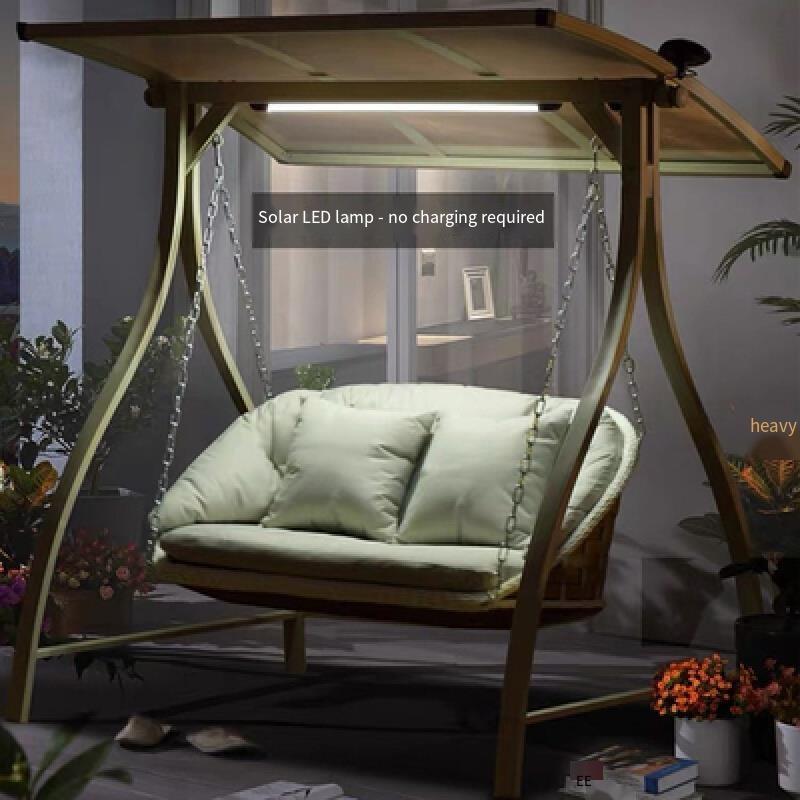 Outdoor Swing Villa Courtyard Outdoor Rocking Chair Solar Aluminum Swing Hanging Rattan Swing (sunscreen Waterproof Cloth Top)