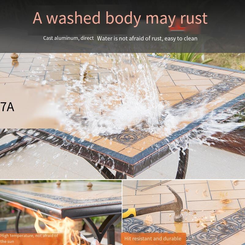 【New plastic wood quality】The table top is made of plastic wood, and the surface is processed by wood grain process. It is durable, corrosion-resistant and load-bearing, and can be used indoors or outdoors.