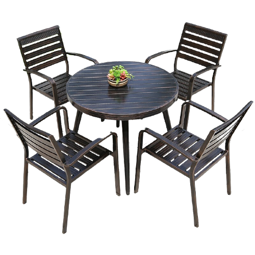 Outdoor Table And Chair Combination Courtyard Garden Outdoor Balcony Waterproof Sunscreen Leisure Cast Aluminum 4 Chairs + 75 * 75 Aluminum Plate Square Table