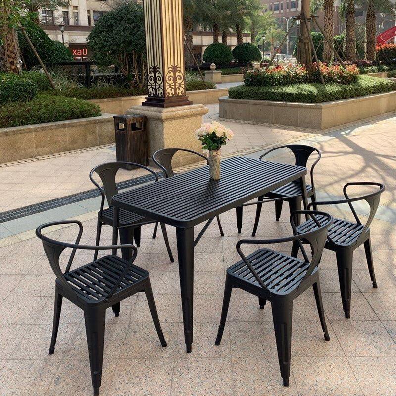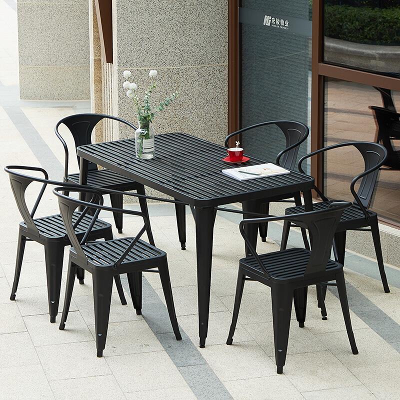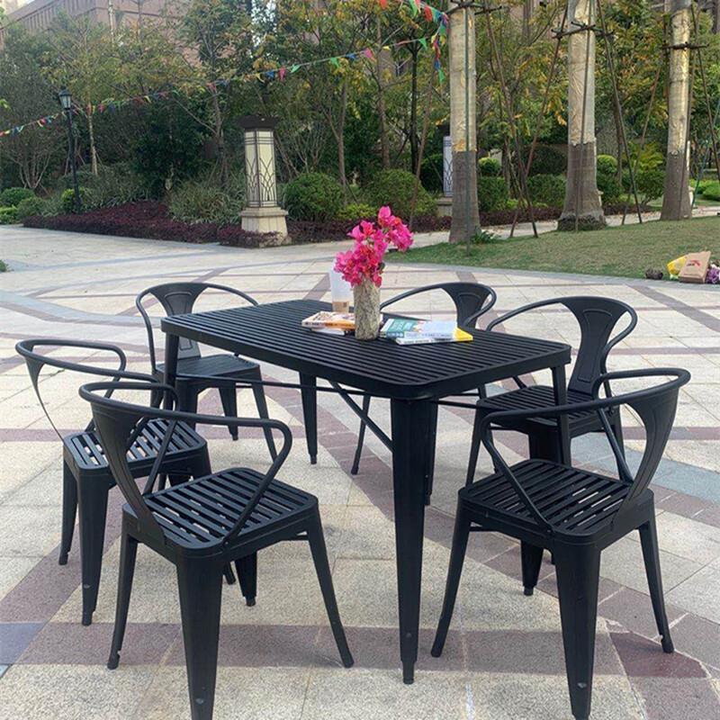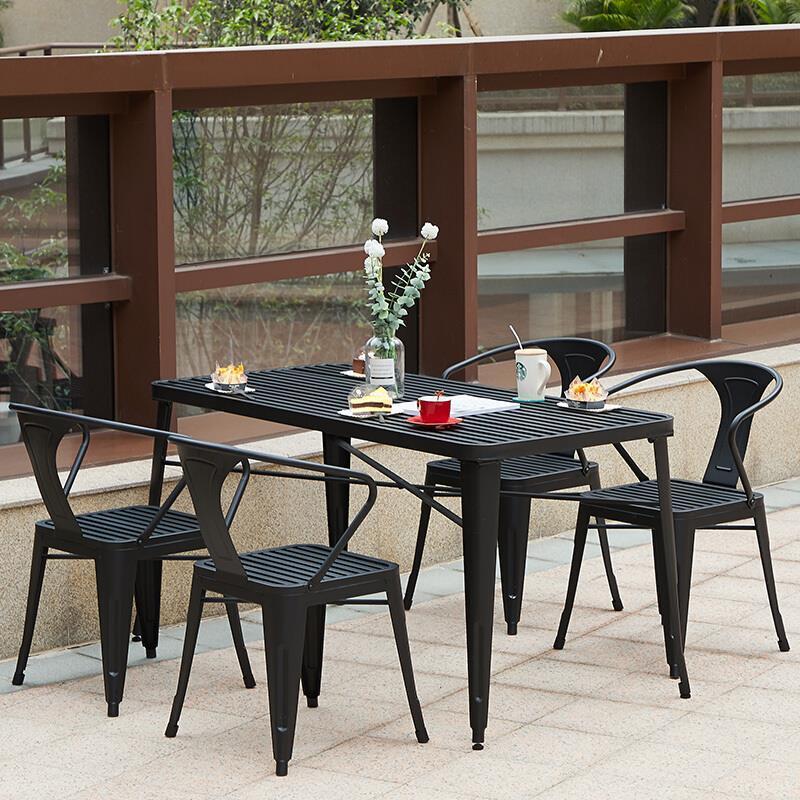 Outdoor Table And Chair Combination Courtyard Leisure Milk Tea Shop With Three Piece Iron Balcony Open Garden Villa Small Tea Table Terrace Dining Table 1 Table (length 70 * Width 70cm) + 4 Chairs