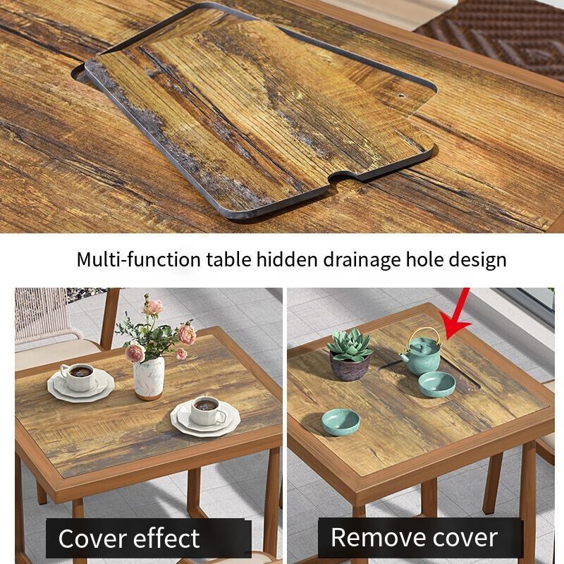 Outdoor Table And Chair Tea Courtyard Terrace Garden Hot Pot Table Small Tea Table Balcony Leisure 4 [dark Gray Chair] + 1 [90x70hpl Long Table With Tea Sea]