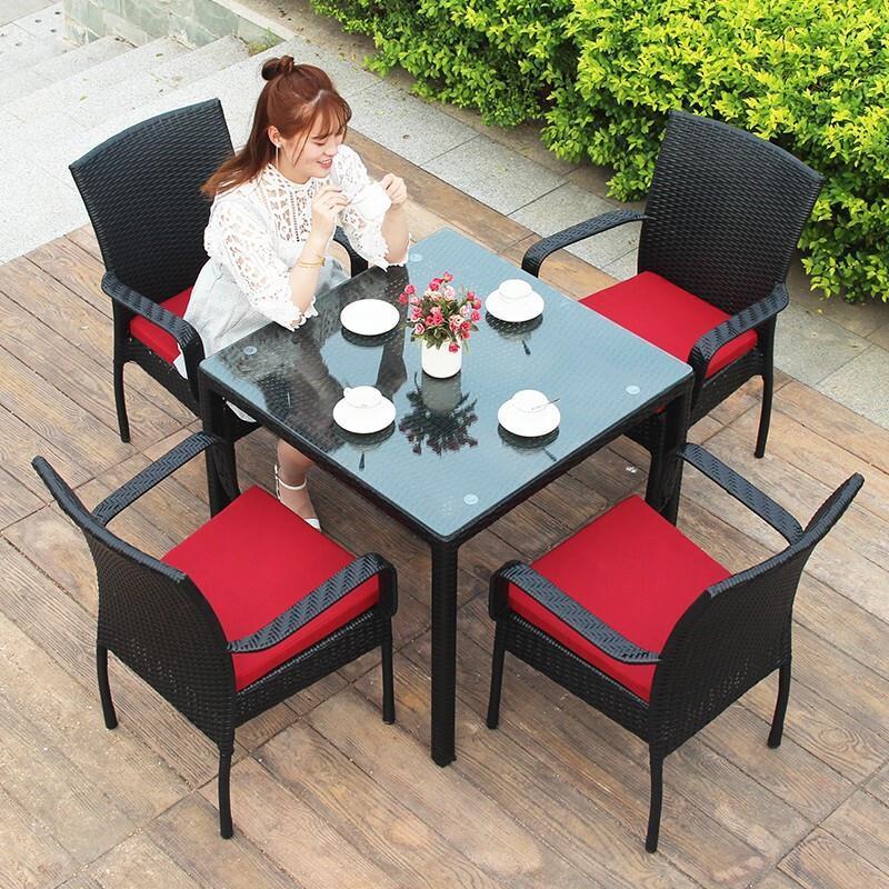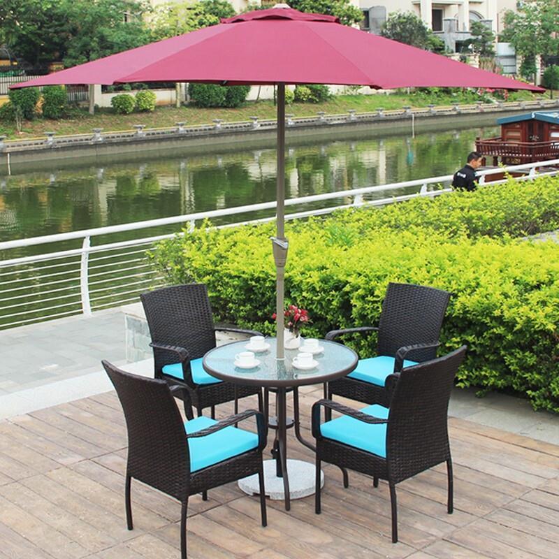 Outdoor Tables And Chairs Balcony Rattan Three Five Piece Set Iron Tea Combination Courtyard Leisure Furniture 4.5-pack Chair + Iron Frame Round Table