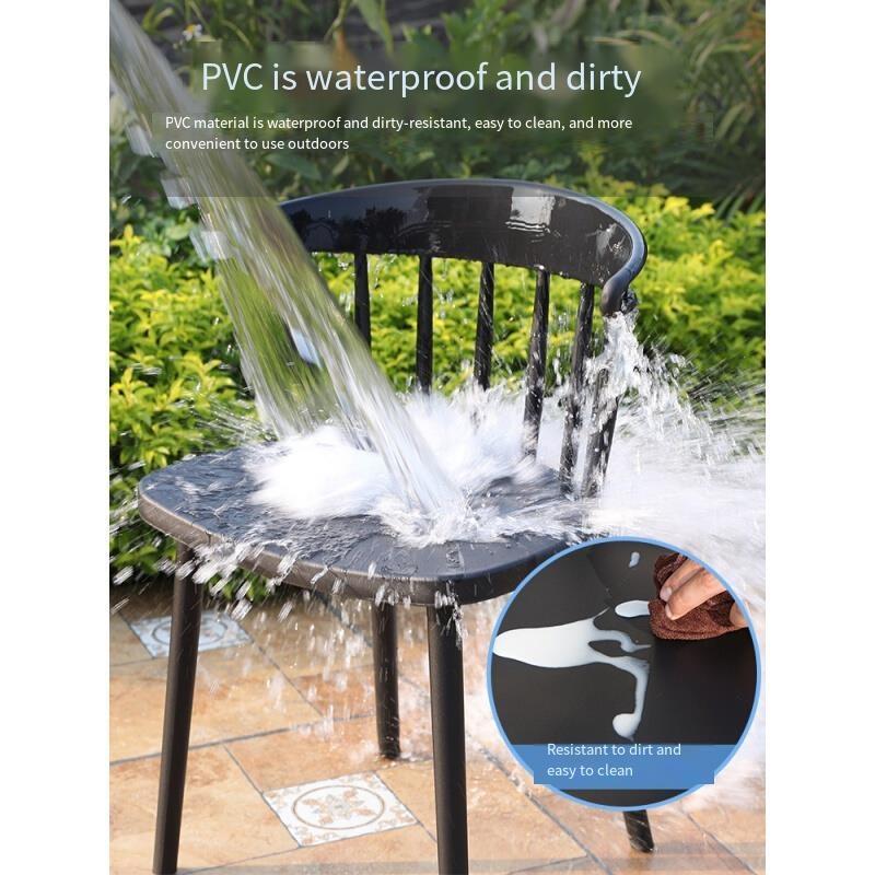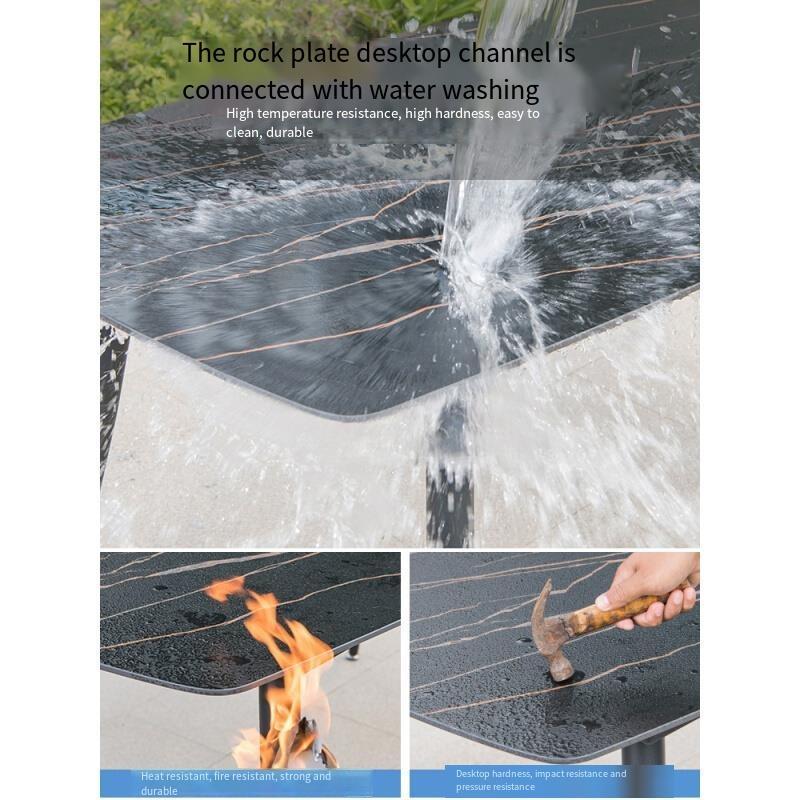 Outdoor Tables And Chairs Courtyard Balcony Garden Milk Tea Shop Rock Board Leisure Combination 6 + 1 [equipped With 16ocm Black Gold Pattern Rock Board Round Corner Long Table]