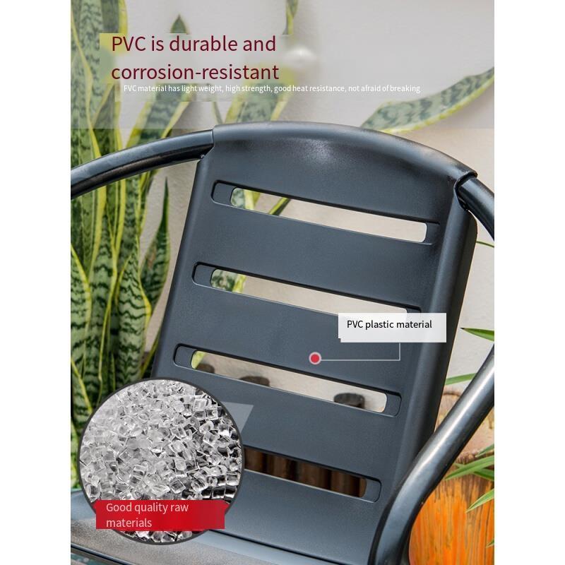 【New plastic wood quality】The table top is made of plastic wood, and the surface is processed by wood grain process. It is durable, corrosion-resistant and load-bearing, and can be used indoors or outdoors.
