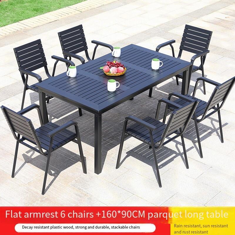 Outdoor Tables And Chairs Garden Plastic Wood Leisure Anti-corrosion Wood Courtyard Outdoor Waterproof Balcony Sun Resistant Flat Armrest