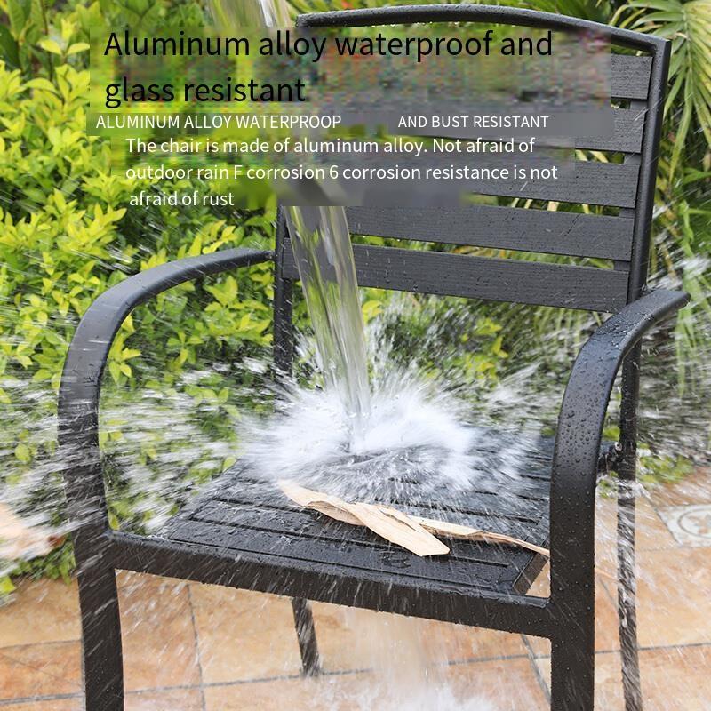 Outdoor Terrace Garden Table And Chair Balcony Aluminum Alloy Furniture Leisure Combination 6 + 1 [with 160cm Aluminum Alloy Three Horizontal Mosaic Table]