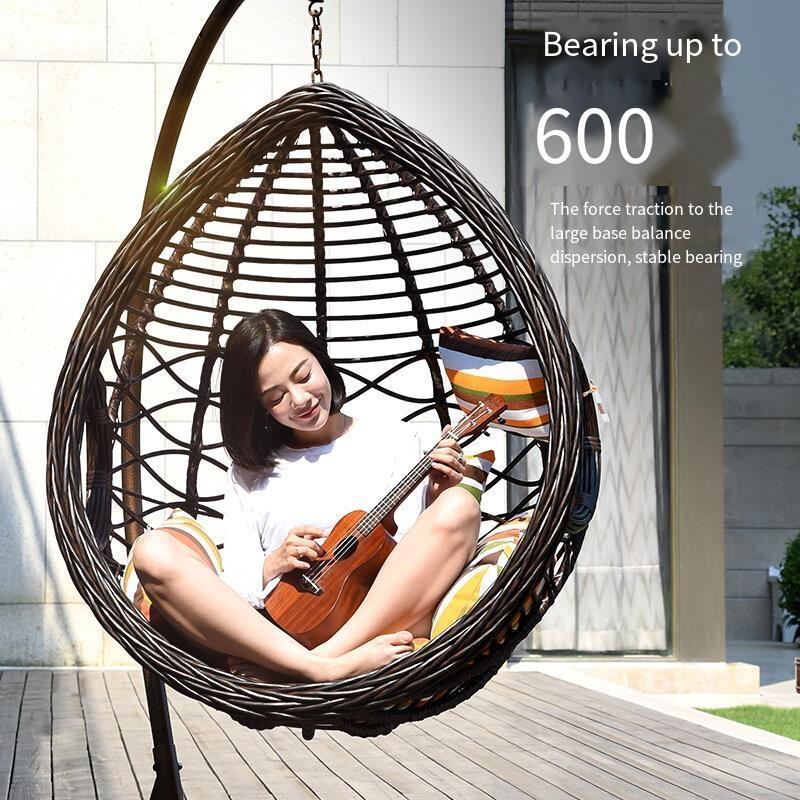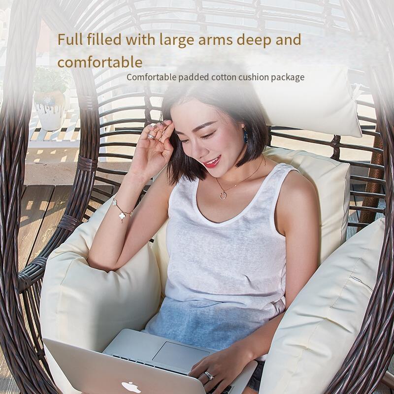 Rattan Chair Hanging Basket Rattan Chair Single Rocking Chair Balcony Leisure Small Cradle Chair Wood Grain Color - Extra Large - Wave With Armrest