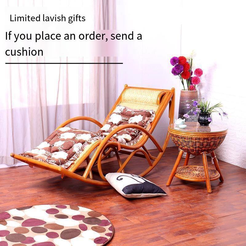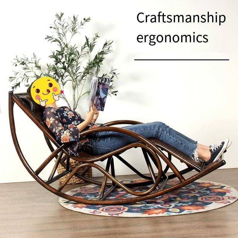 Rattan Chair Rocking Adult Leisure Reclining Lunch Break Lazy Family Balcony Outdoor Nap Rocking Cool Chair Natural Hand Tea Table Ventilation Vertical Clause (grapefruit Black)