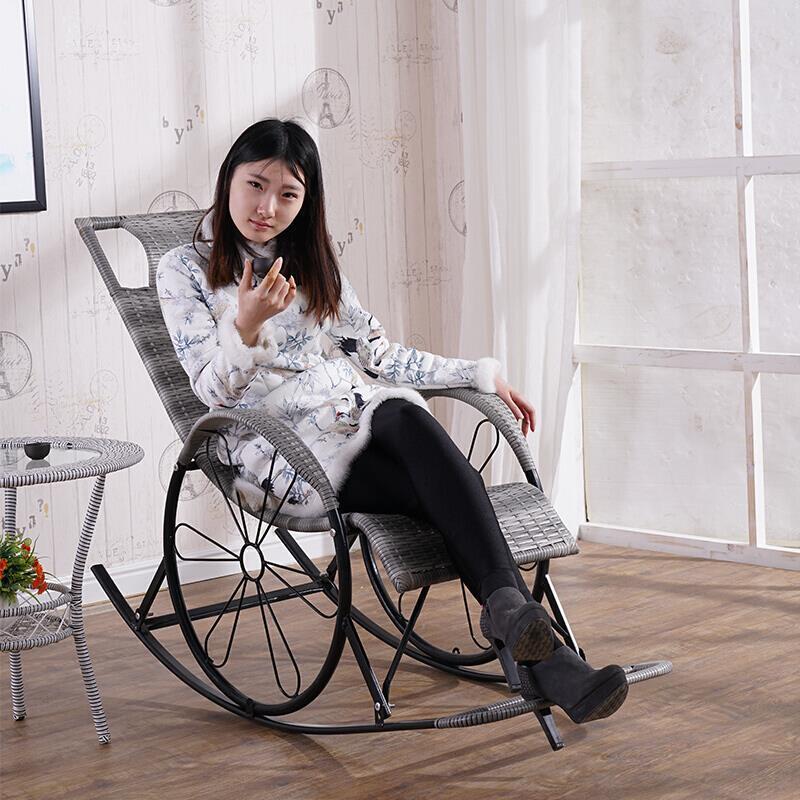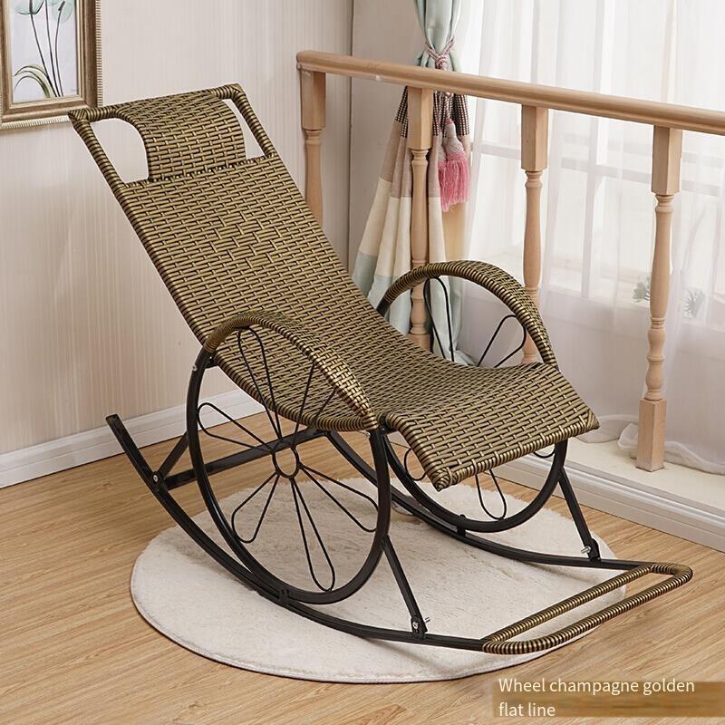 Rattan Chair Rocking Adult Lunch Break Afternoon Couch Reclining Chair Balcony Household Leisure Beach Portable Armchair Lazy Armchair Back Folding Antique Red Thickening (round Line)