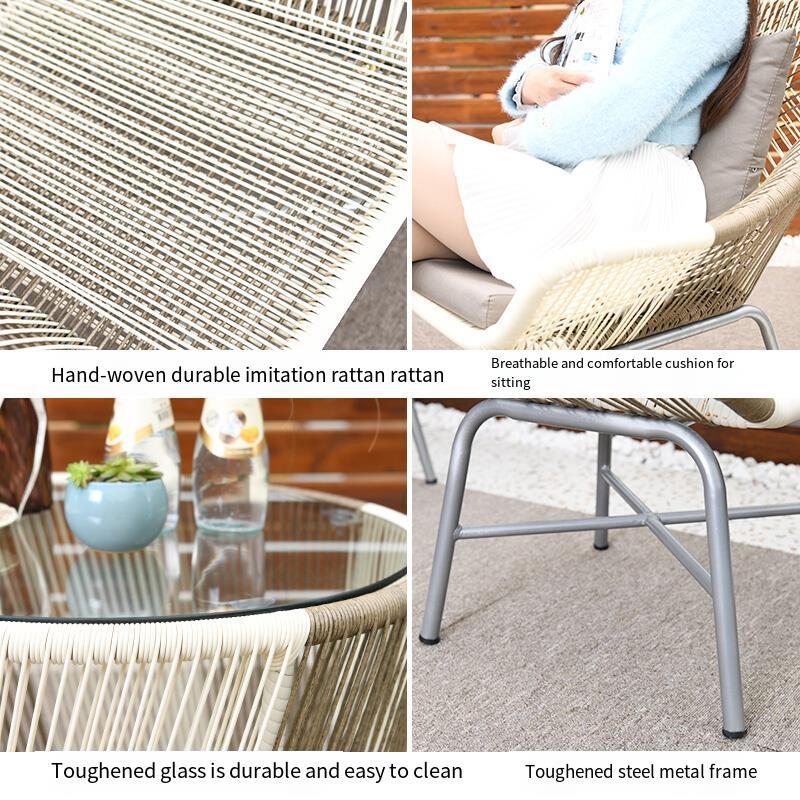 Rattan Chair Three Piece Creative Balcony Leisure Small Tea Table Garden Courtyard Outdoor Nordic Rattan Table And Chair Single Chair Outdoor Courtyard Balcony Leisure Rattan Chair Single Chair * 2 + Large Tea Table