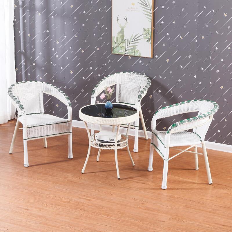 Rattan Chair Three Piece Set Balcony Table And Chair Tea Table Simple Leisure Back Chair Outdoor Off White Two Chairs One Table
