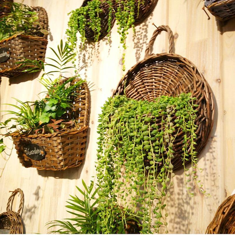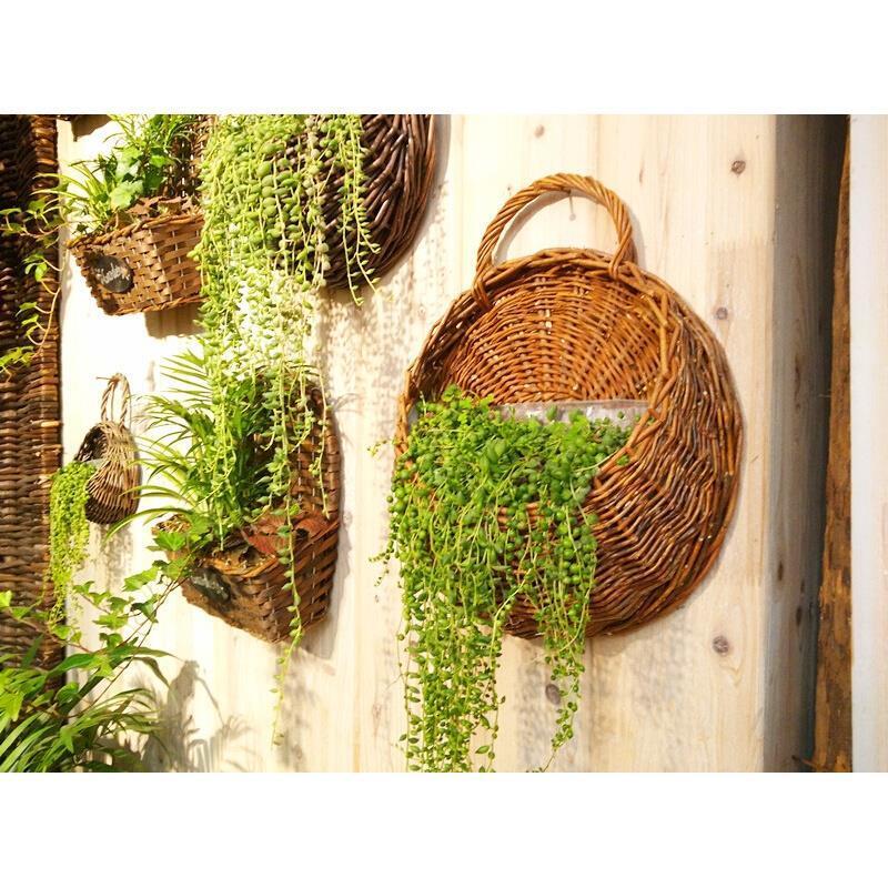 Rattan Wall Hanging Flower Blue Frame Wall Hanging Basket Primary Color Flower Basket
