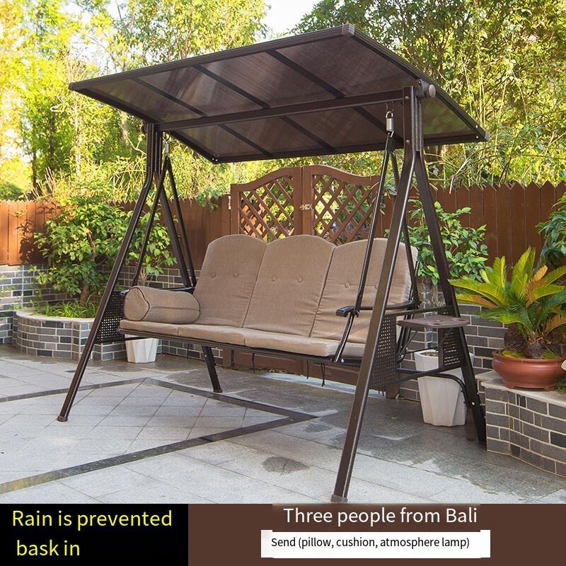 Outdoor Swing Rocking Chair Balcony Iron Double Swing Chair Outdoor Garden Hammock [Cushion + Atmosphere Lamp] Three Person Swing