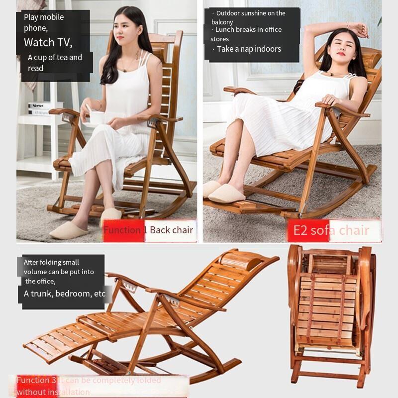 Rocking Chair Bamboo Chair Reclining Chair Elderly Rattan Chair Adult Rocking Chair Balcony Lunch Break Chair Courtyard Nap Chair Folding Chair