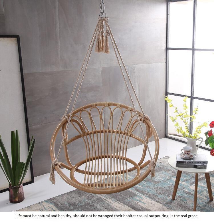 Rocking Chair Hanging Chair Real Rattan Cotton Rope Single Indoor Outdoor Swing Cradle Rocking Chair Swing Single Basket